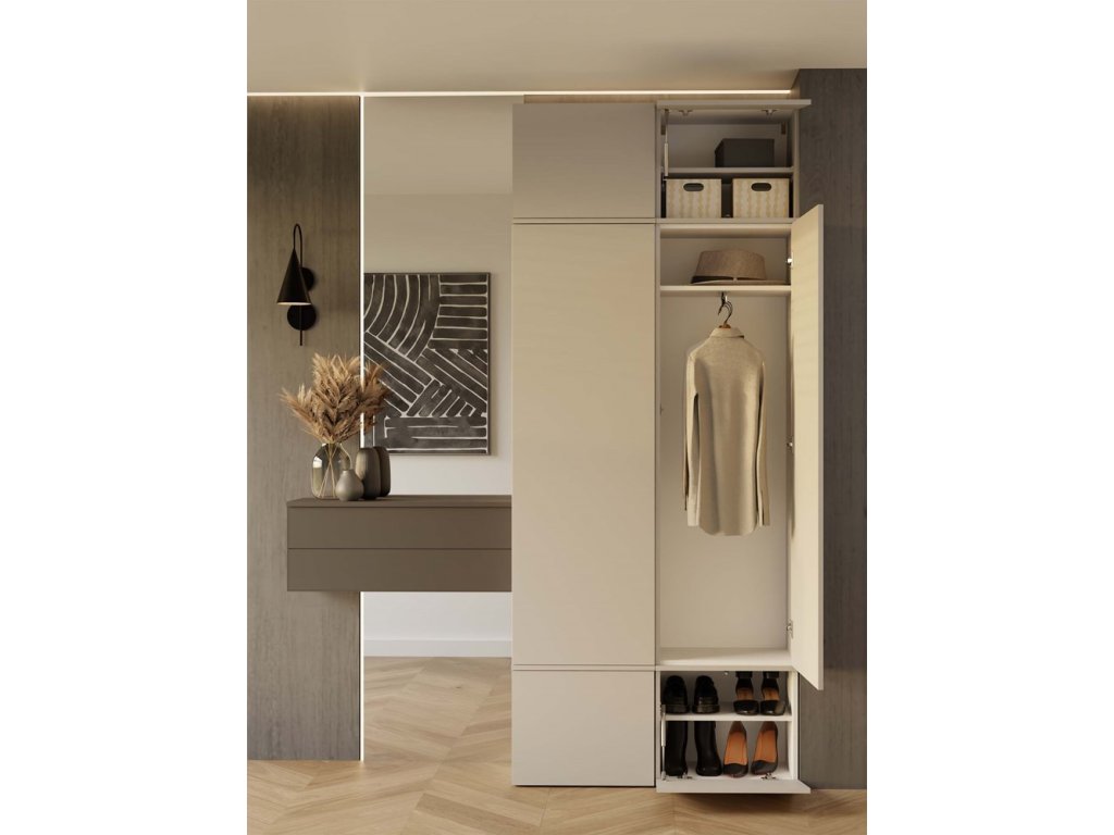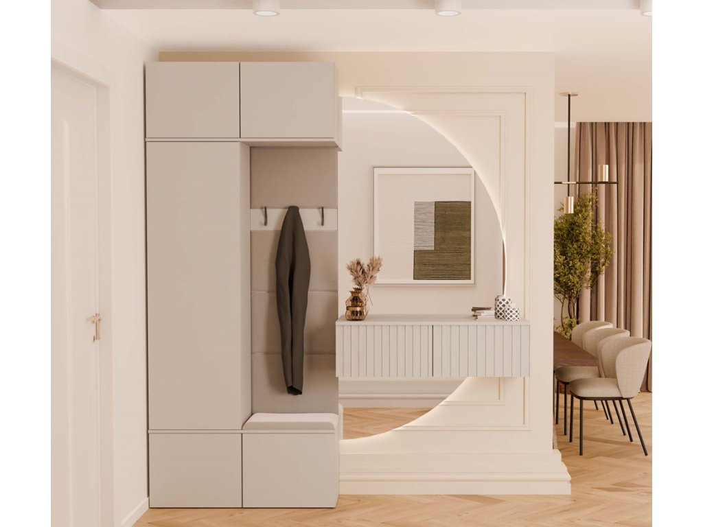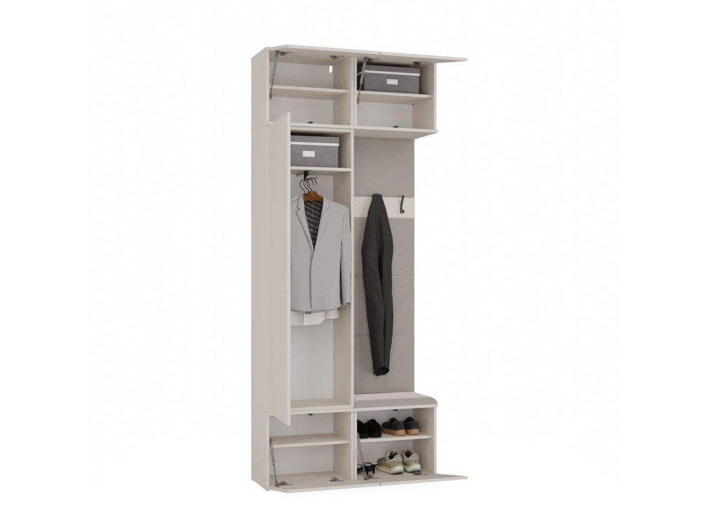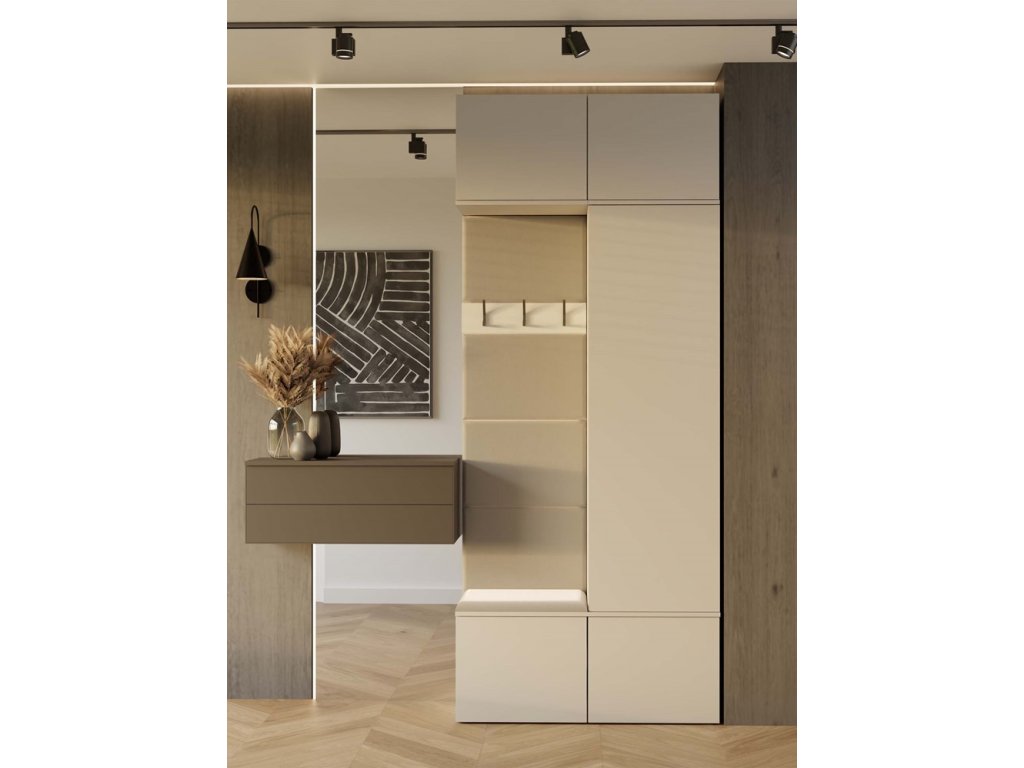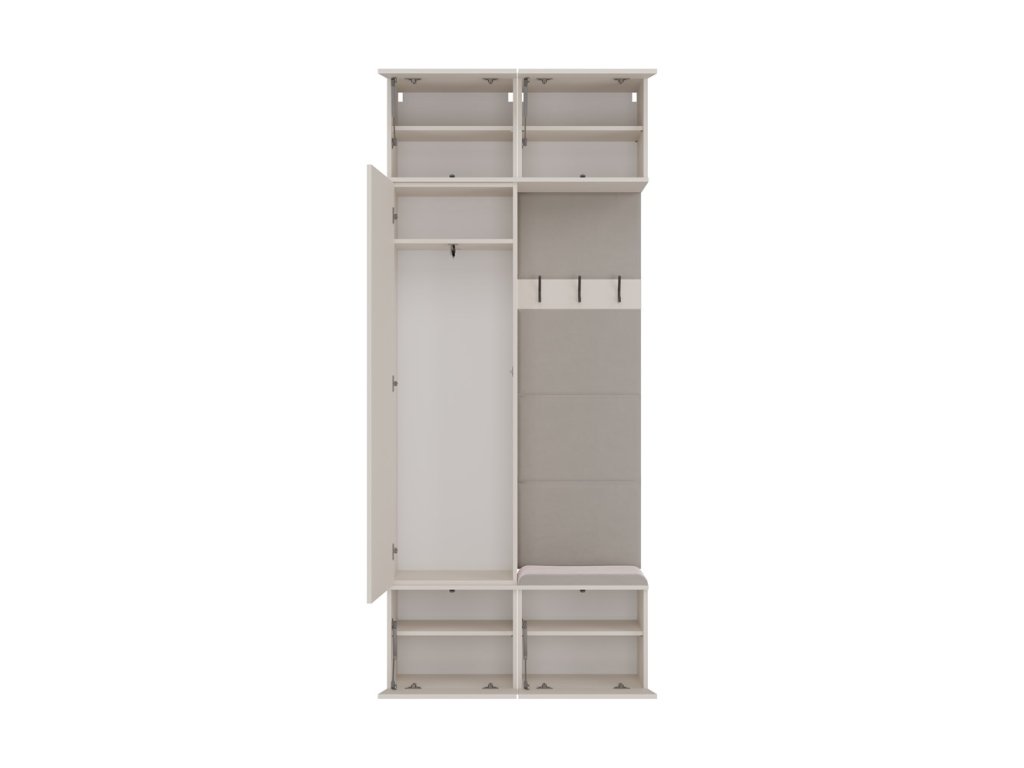 Předsíňová sestava AGA je navržena s důrazem na funkčnost, estetiku a flexibilitu. Díky promyšlenému modulárnímu systému získáte nejen velké množství úložného prostoru, ale i pohodlné sezení a praktické doplňky v jednotném designu. Šatní skříň nabízí horní úložnou skříňku rozdělenou policí, hlavní část s výsuvnou tyčí na ramínka a policí, a spodní skříňku s dalším úložným prostorem – ideální na obuv a doplňky. Věšákový panel obsahuje čalouněné opěradlo, sedák, tři háčky a skříňky nahoře i dole. Čelní plochy jsou řešeny v minimalistickém designu bez úchytů – s praktickým otevíráním na dotek díky systému TIP-ON. Systém AGA lze libovolně rozšiřovat nebo měnit díky volně kombinovatelným modulům. Vytvořte si předsíň přesně podle svých prostorových možností a potřeb. Dodáváme v demontu.
