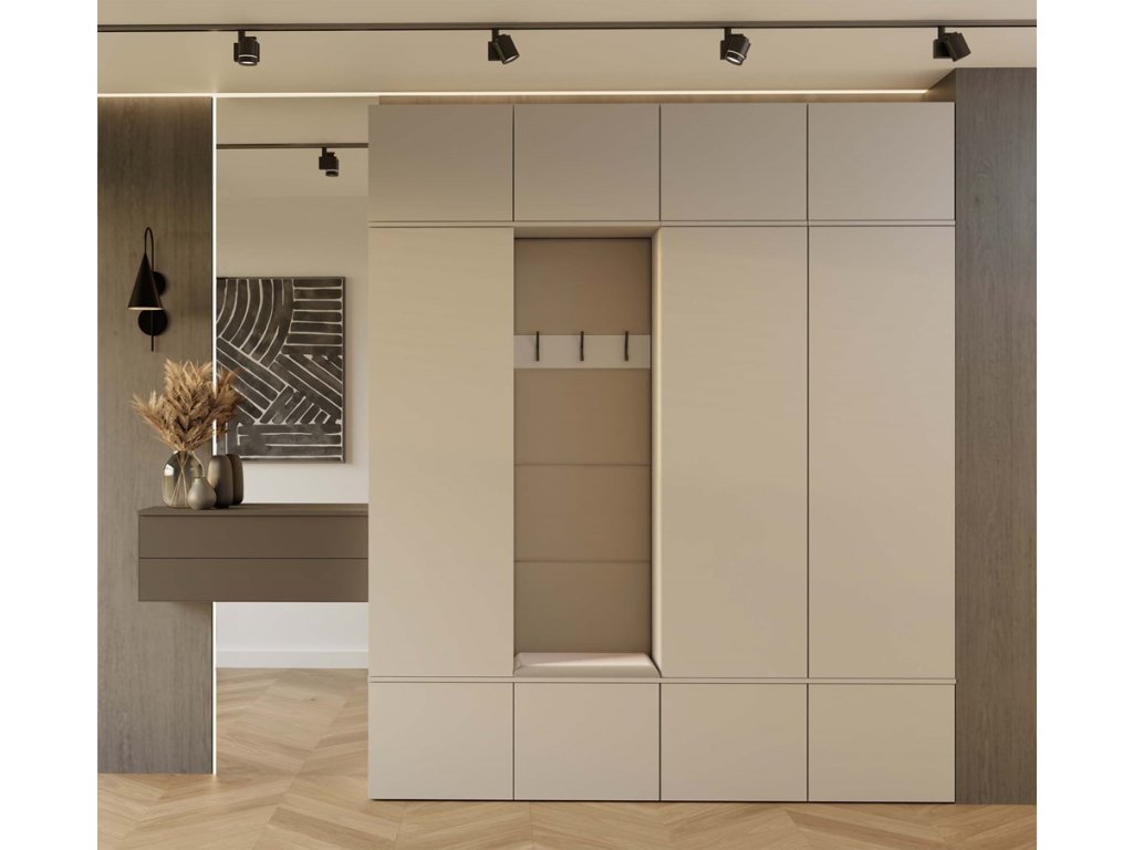 Předsíňová sestava AGA je navržena s důrazem na funkčnost, estetiku a flexibilitu. Díky promyšlenému modulárnímu systému získáte nejen velké množství úložného prostoru, ale i pohodlné sezení a praktické doplňky v jednotném designu.
