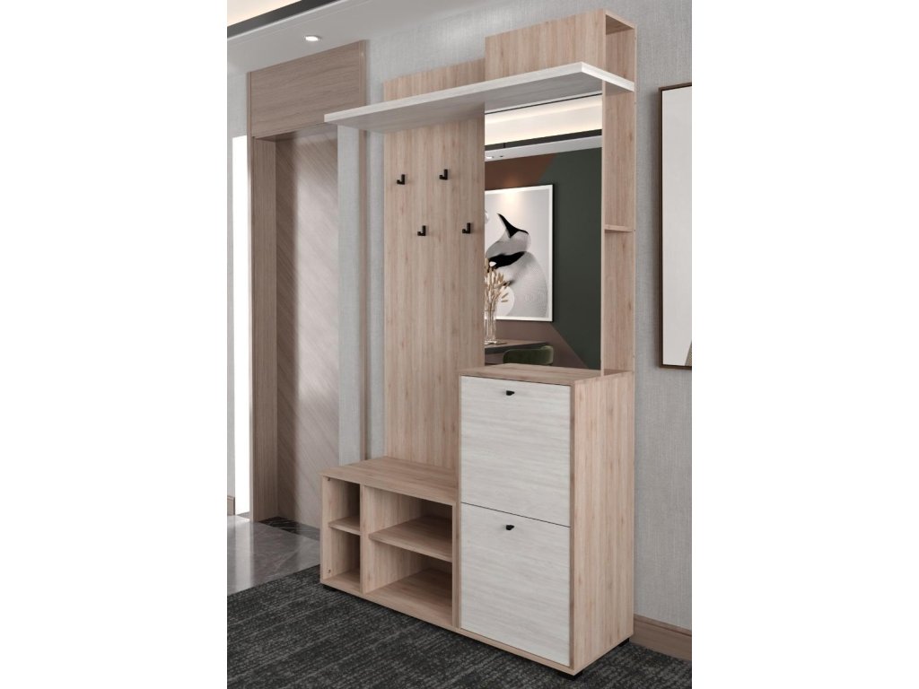 Tato předsíňová sestava poskytuje praktické a stylové řešení pro vaši předsíň. Barevné provedeníje dub San Remo/borovice Canyon. Skládá se - věšáky, odkládací police, skříňka na boty, zrcadlo, otevřené police. Materiálje kombinací kvalitní LTD 22 a 16 mm. Je navržena tak, aby přinesla pořádek a styl do vašeho vstupního prostoru. Dodáváme v demontontovaném stavu.Doplňkové parametry