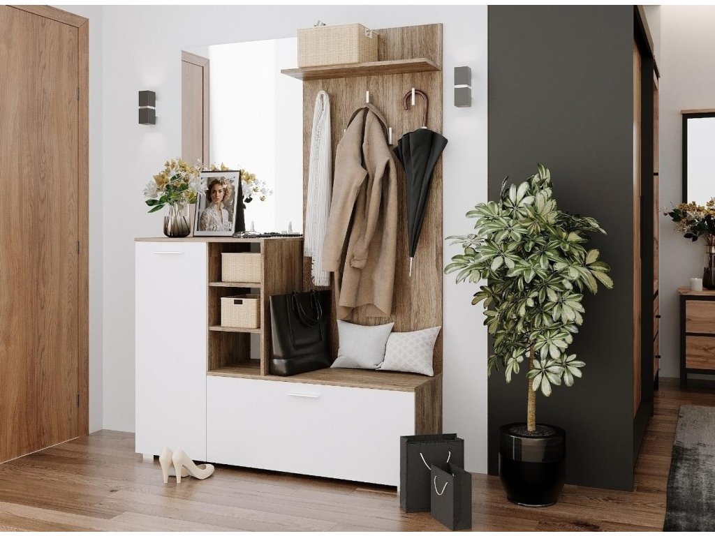 Praktická sestava vytvoří funkční a pohodlnou předsíň.Hlavní výhody:Botník s podsedákem Praktické zrcadlo s poličkou Kvalitní lamino