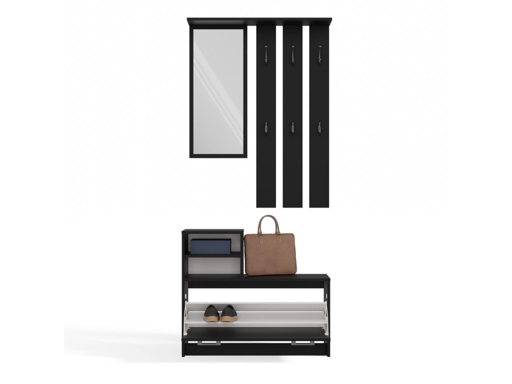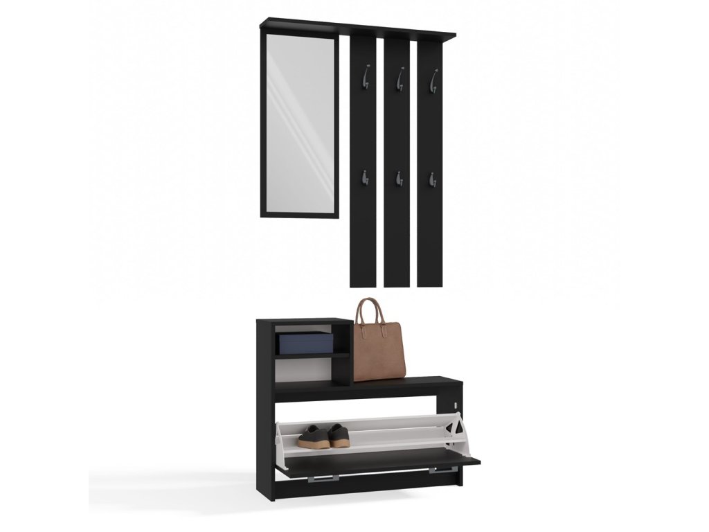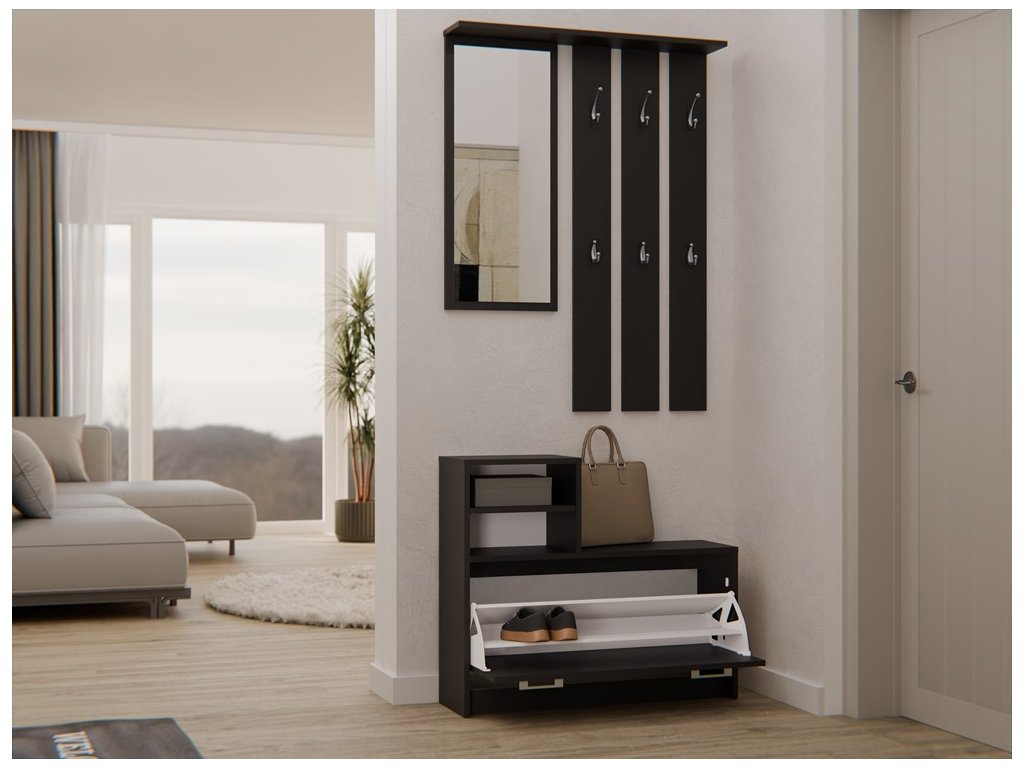 Moderní předsíňová sestava, která vytvoří funkční a pohodlnou předsíň.Hlavní výhody: Botník s podsedákem 6 stylových černých věšáků Praktické zrcadlo s...