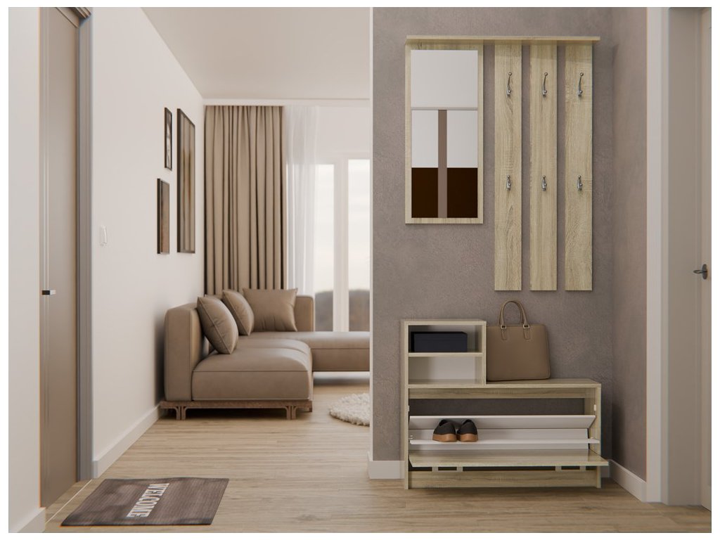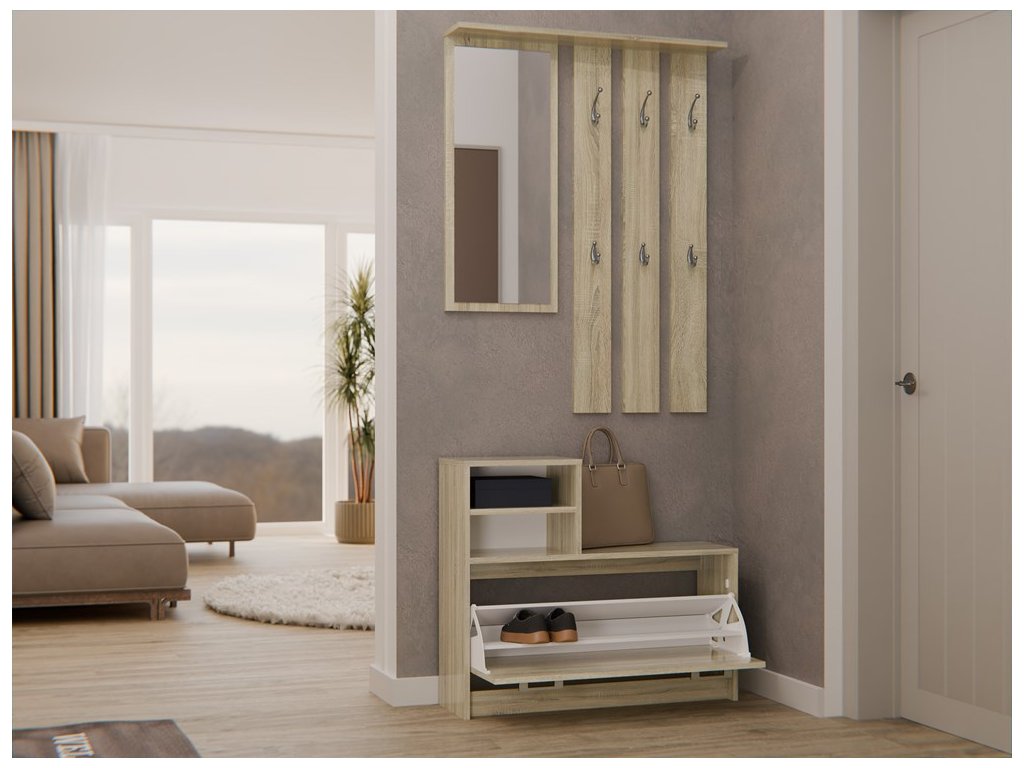 Předsíňová sestava je vyrobena z desky LTD v barvě dub artisan. Sestava se skládá z těchto položek (Š x V x H cm) - botník (70 x 54 x 34 cm), věšáková stěna s policí (69 x 145 x...