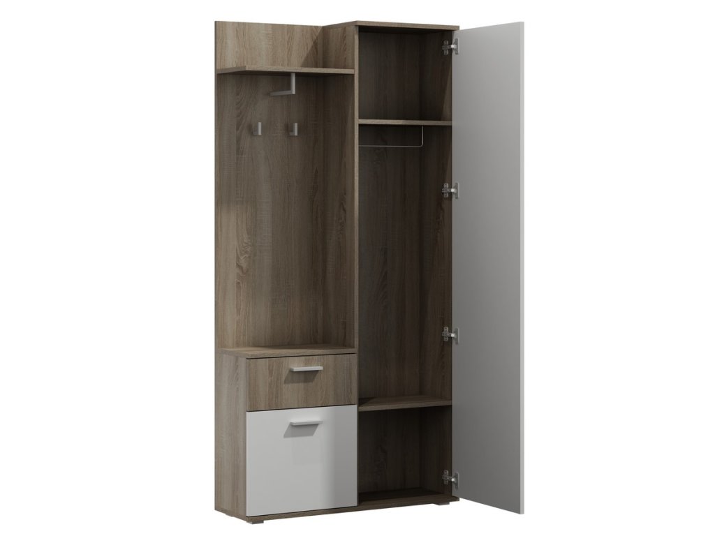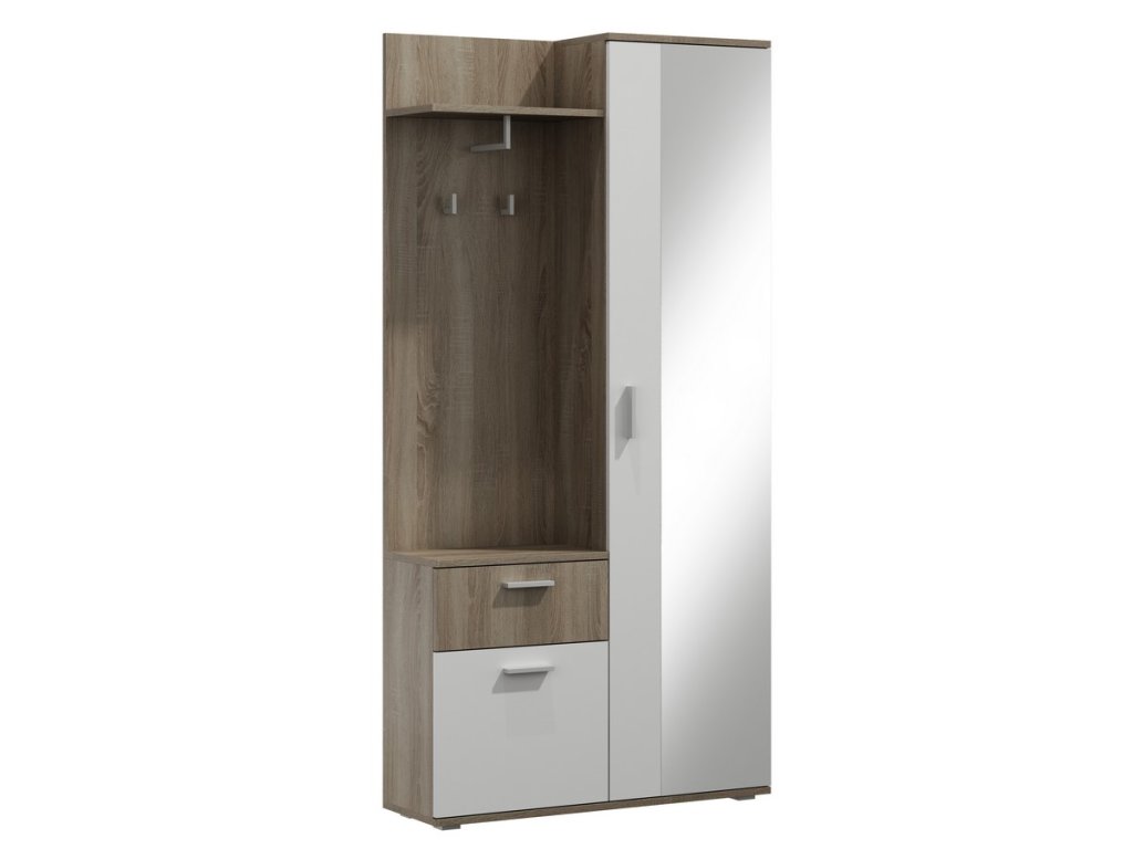 šířka: 83.4 cm | výška: 176.6 cm | hloubka: 59 cm Předsíňová sestava – Praktické rohové řešení pro vaši předsíň Předsíňová sestava přináší elegantní design a funkční uspořádání,...