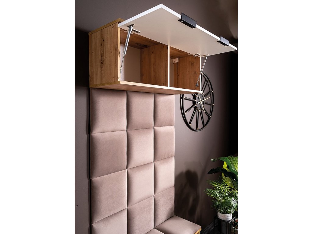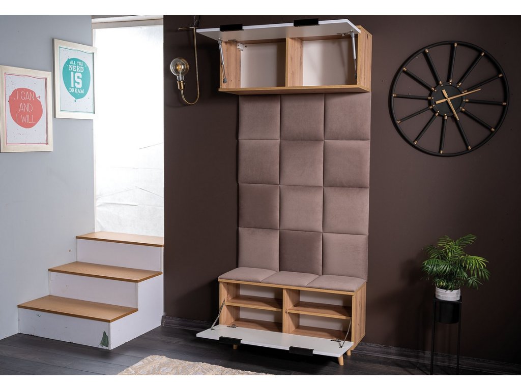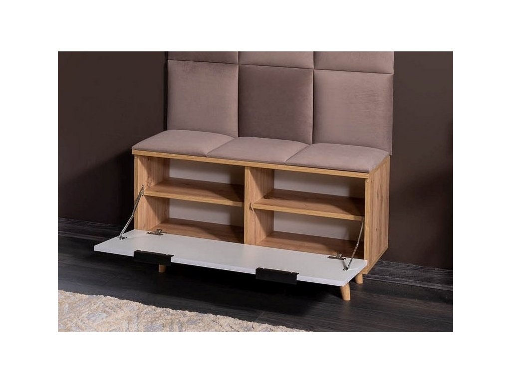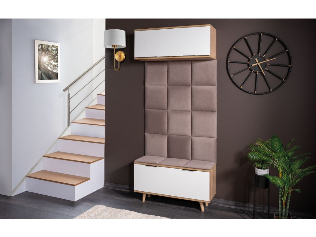 Předsíňová stěna s čalouněním PUB dub artisan/bílá mat/béžová