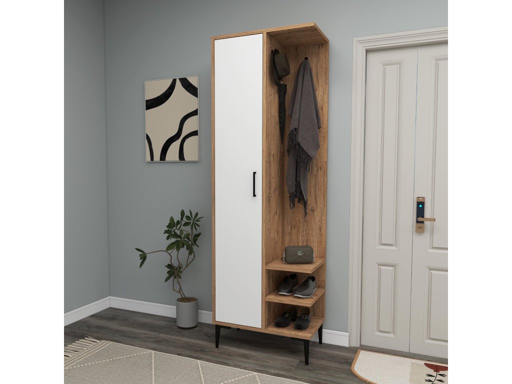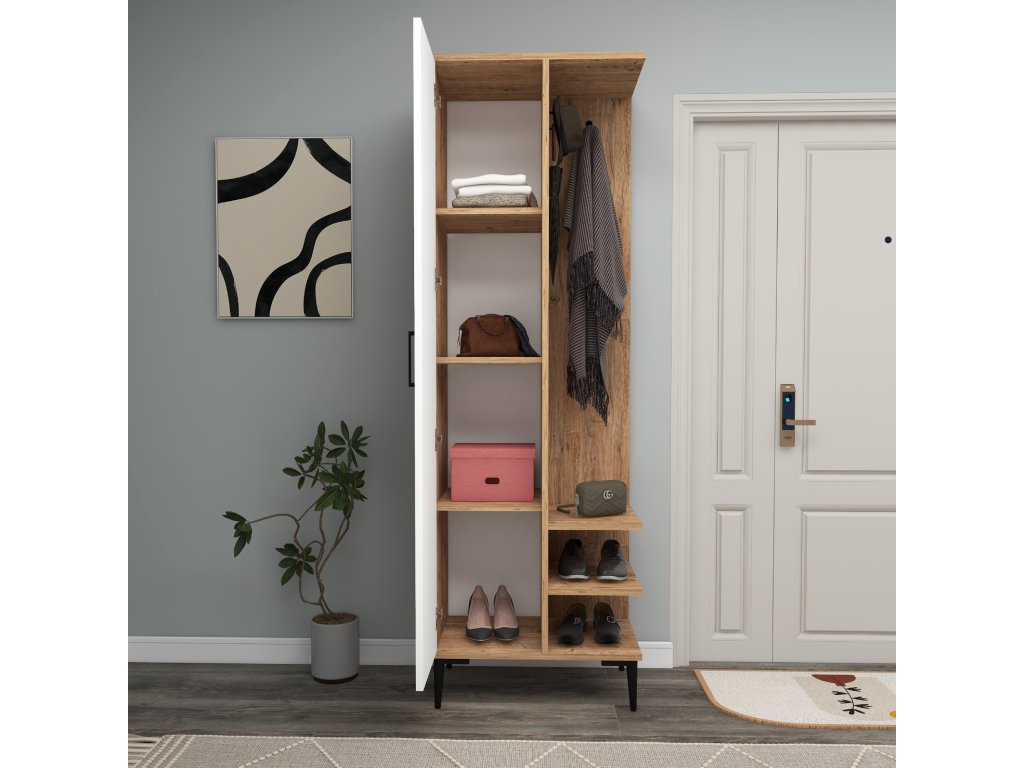 Předsíňová sestava kombinuje moderní design a funkčnost, což z ní činí ideální volbu pro každou domácnost. Tato sestava nabízí dostatek úložného prostoru a chytré uspořádání, které zahrnuje věšákovou stěnu, policovou skříň a praktickou polici. Díky svým kompaktním rozměrům je vhodná i do menších prostorů.
