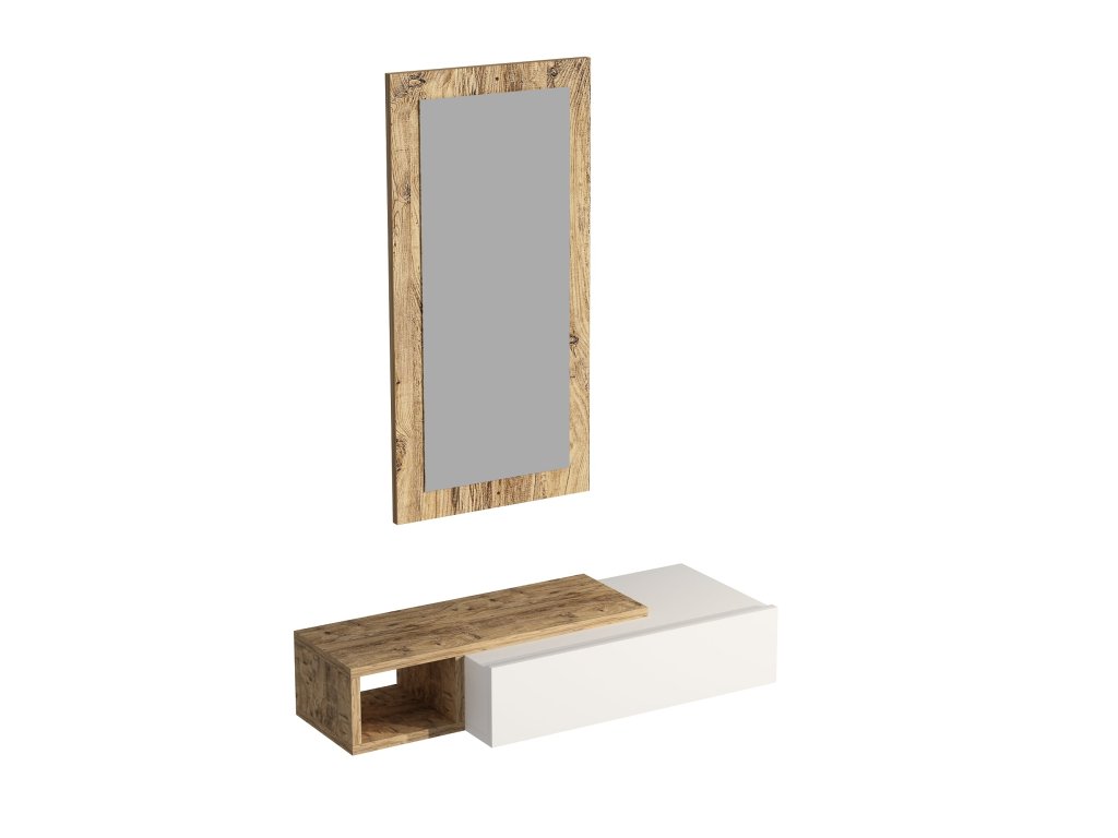 TRIPOLI závěsná konzole se zrcadlem, borovice Atlantic / bílá