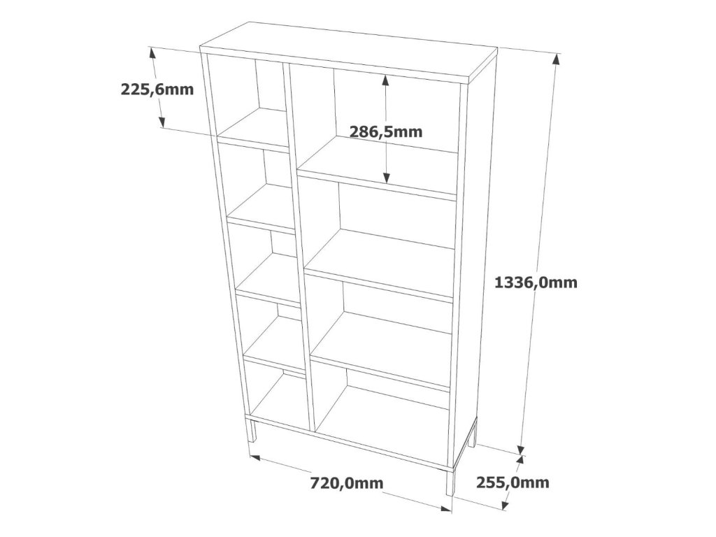 S rozměry H25,5 x V133,6 x Š72 cm a 7 policemi nabízí dostatek prostoru pro uspořádání knih, dekorací nebo jakýchkoli osobních předmětů.