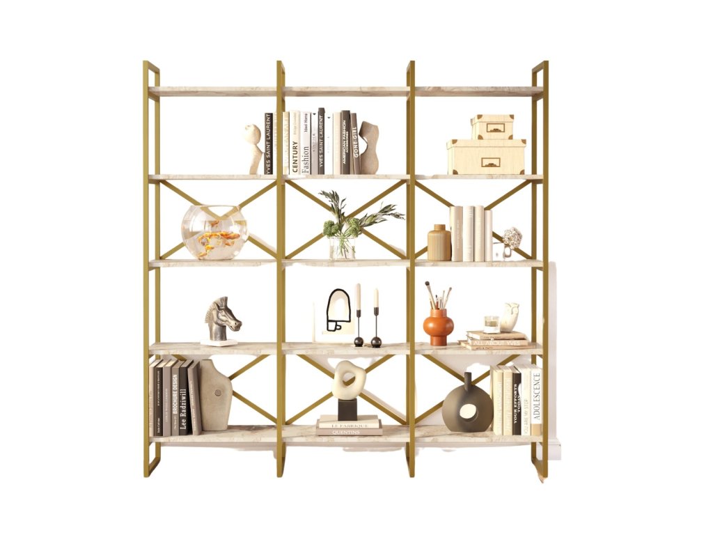 - Vybavení: 5 polic, které nabízí dostatek místa pro vaše knihy, dekorace a další předměty.