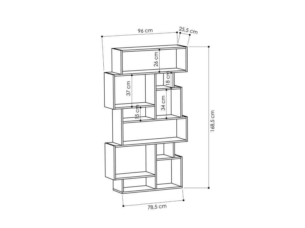 Praktické rozměry: Díky rozměrům 168.5 x 96 x 25.5 cm a pěti policím nabízí dostatek úložného prostoru pro vše, co chcete v obývacím pokoji vystavit či uschovat.