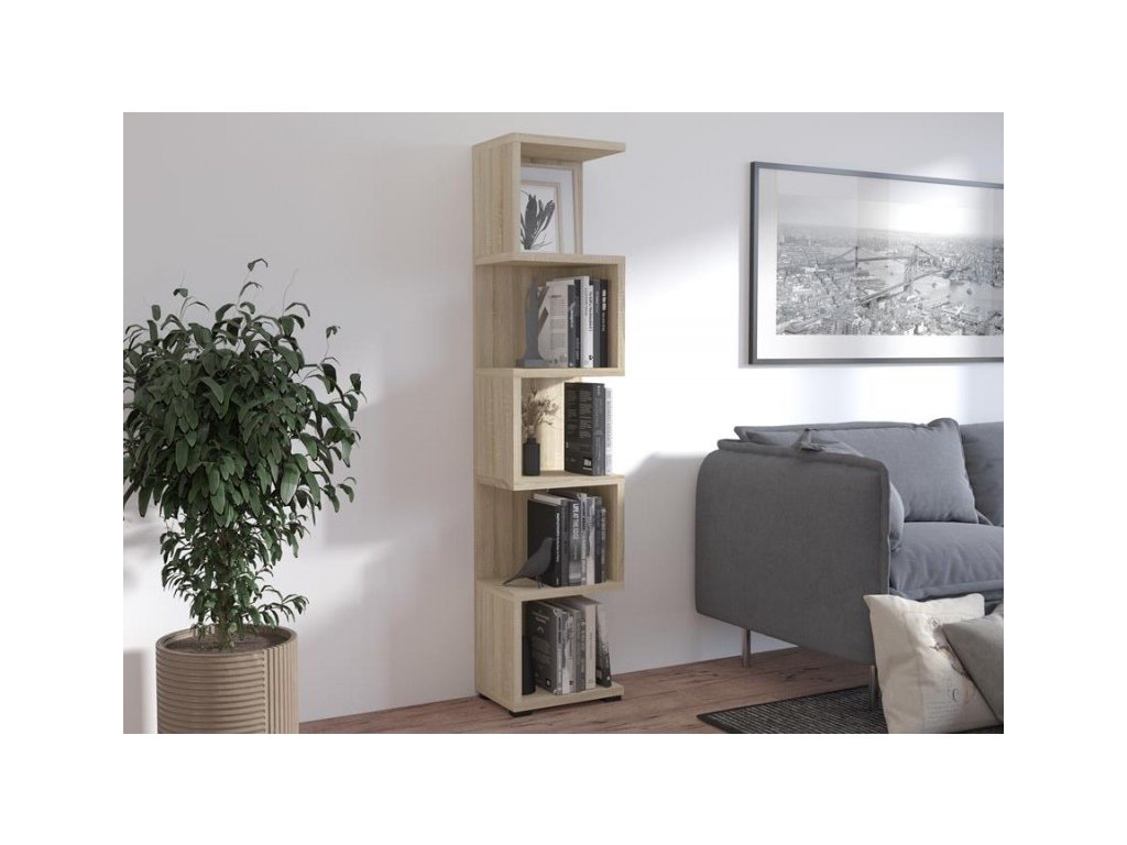 šířka: 93.6 cm | výška: 178.6 cm | hloubka: 29.6 cm MAURICIO no.4: Rohový regál v odstínu dubu pro váš obývací pokoj Udělejte svůj obývací pokoj ještě útulnějším s MAURICIO...