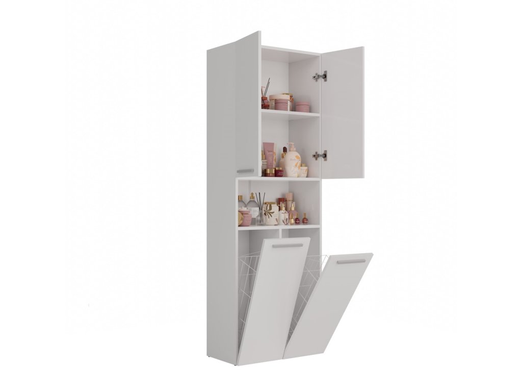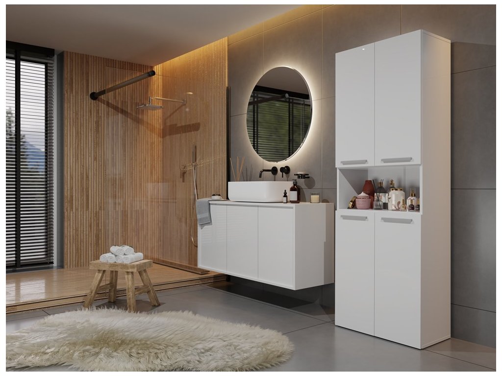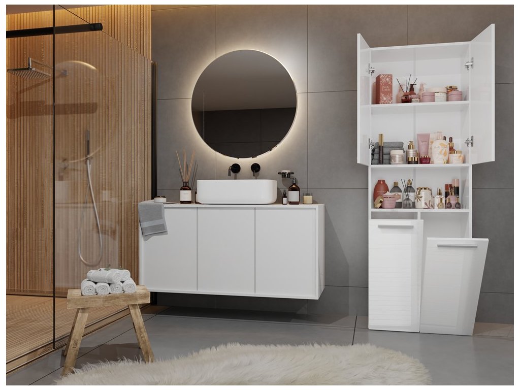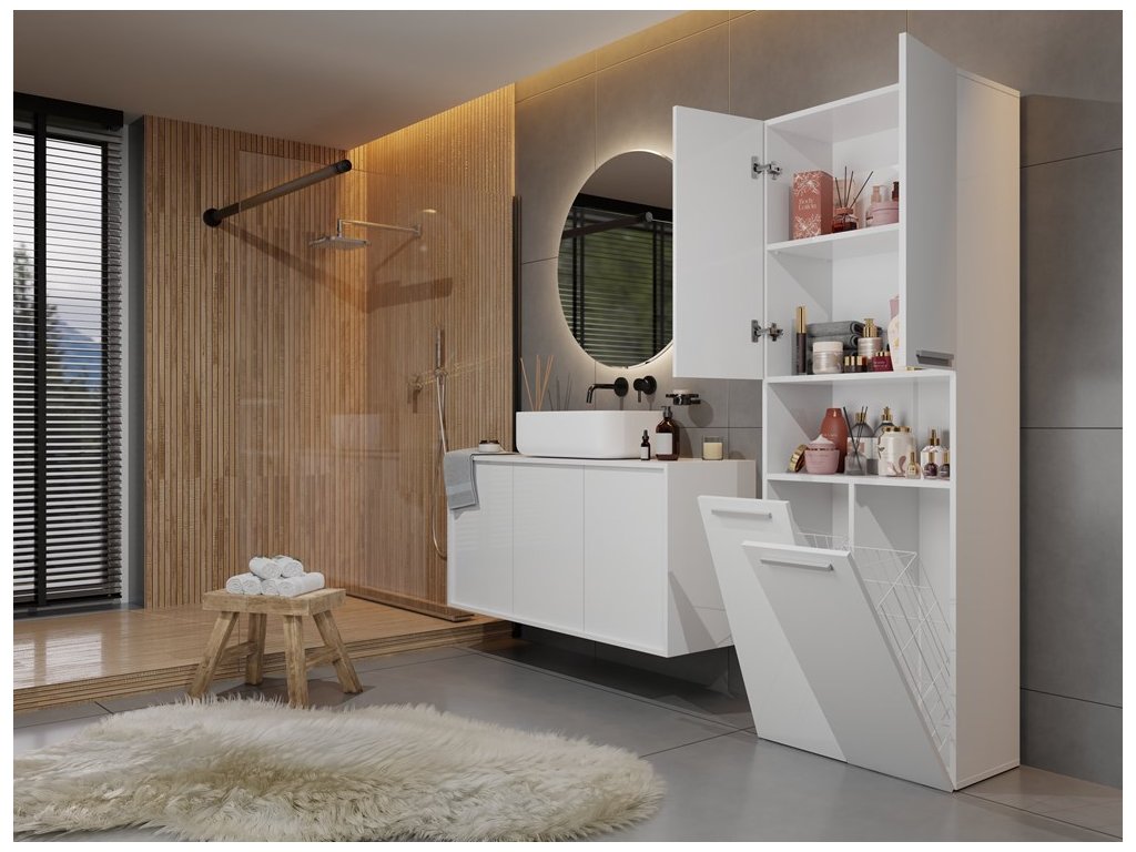 Stylová skříňka Noeli vám díky praktickému úložnému prostoru pomůže vytvořit dokonale organizovanou a útulnou koupelnu. Nadčasový design splní očekávání všech, kteří oceňují kombinaci jednoduchosti a elegance. Skříňka je vyrobená ze snadno udržovatelného lamina, hrany jsou povrchově upravené ABS plastem (vyznačuje se vysokou mechanickou a chemickou odolností).