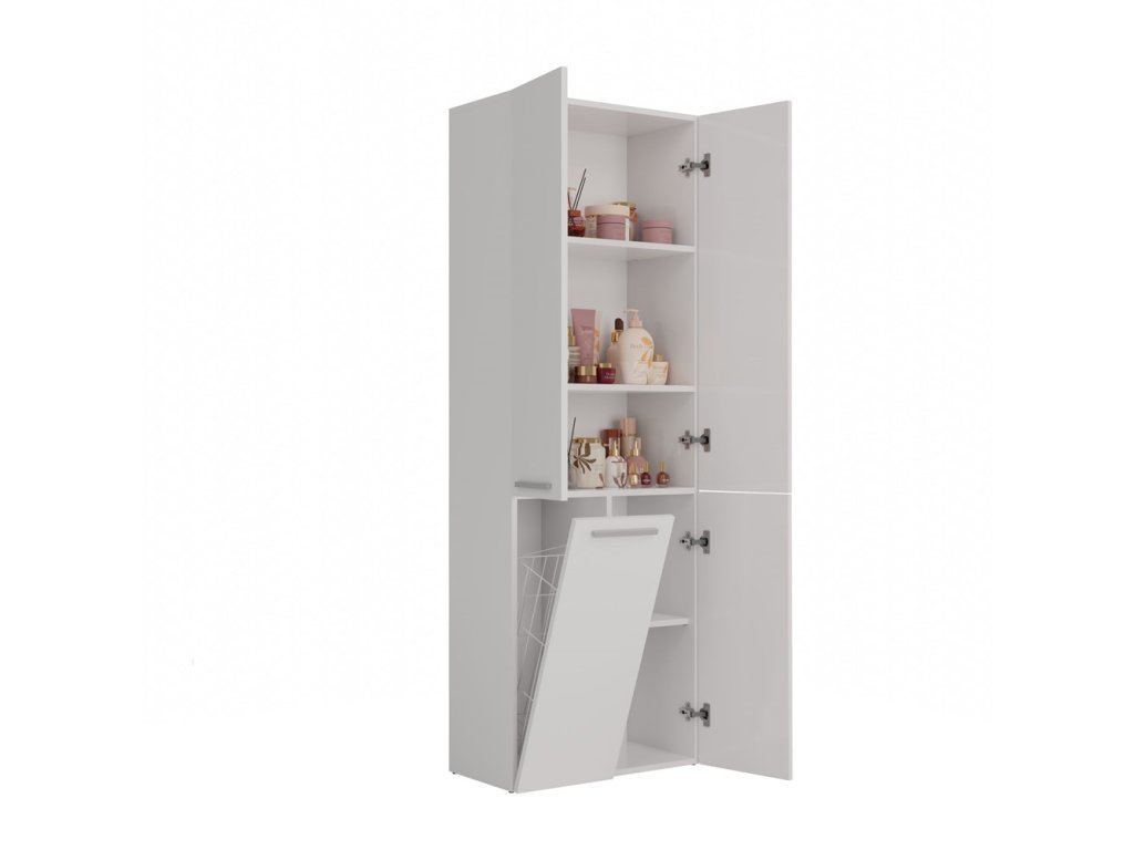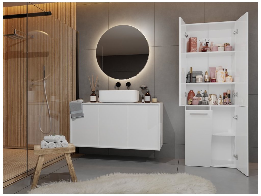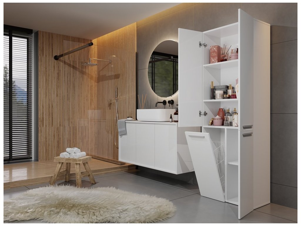 Stylová skříňka Noeli vám díky praktickému úložnému prostoru pomůže vytvořit dokonale organizovanou a útulnou koupelnu. Nadčasový design splní očekávání všech, kteří oceňují kombinaci jednoduchosti a elegance. Skříňka je vyrobená ze snadno udržovatelného lamina, hrany jsou povrchově upravené ABS plastem (vyznačuje se vysokou mechanickou a chemickou odolností).