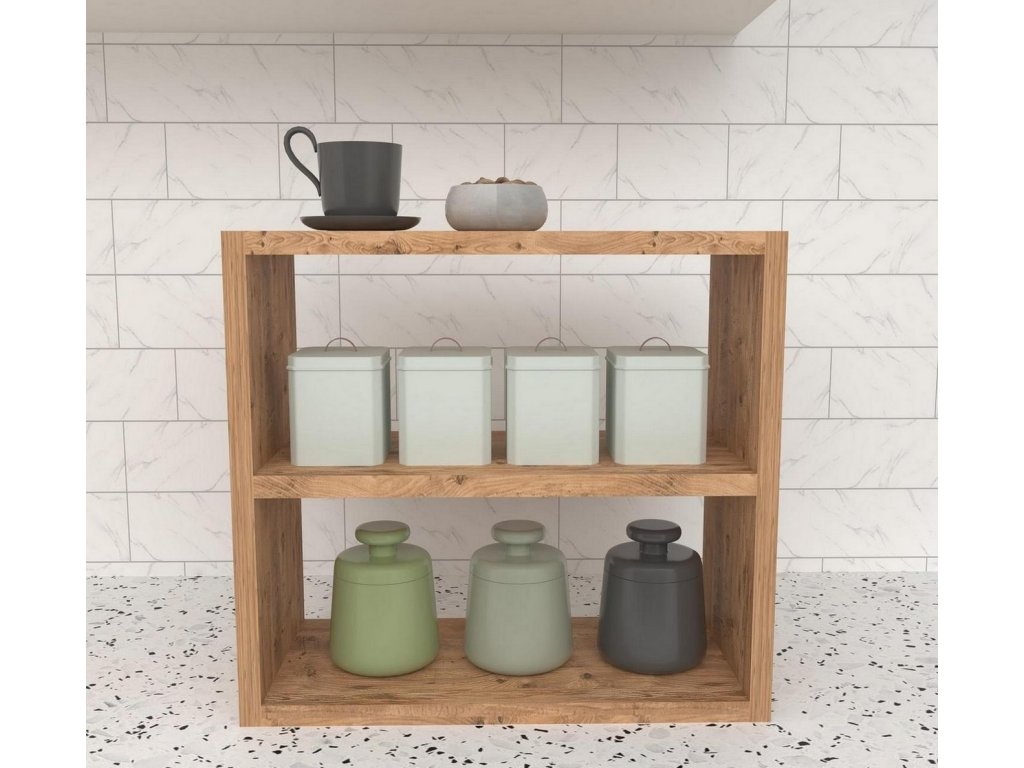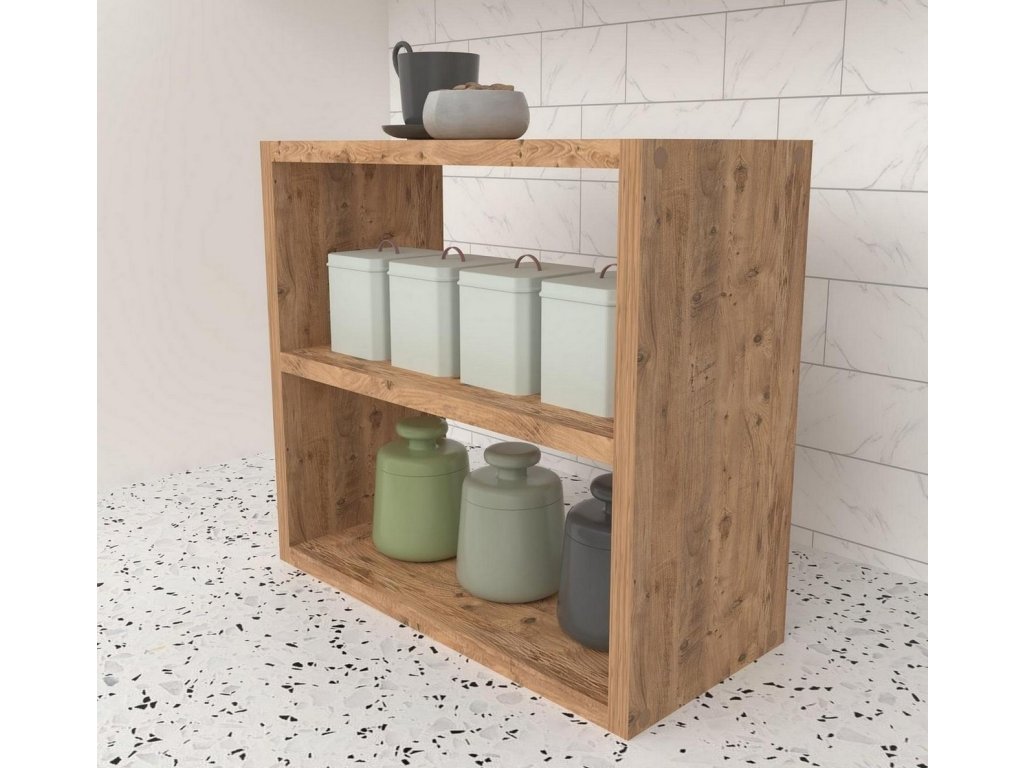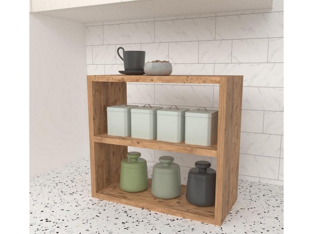 Malý regál je vyroben z kvalitní desky LTD nenáročné na údržbu, v barevném provedení borovice. Tloušťka materiálu - 18 mm. Je vhodný do kuchyně, ale také jej můžete využít v pracovně či dětském pokoji. Dodáváme v demontovaném stavu.Doplňkové parametry