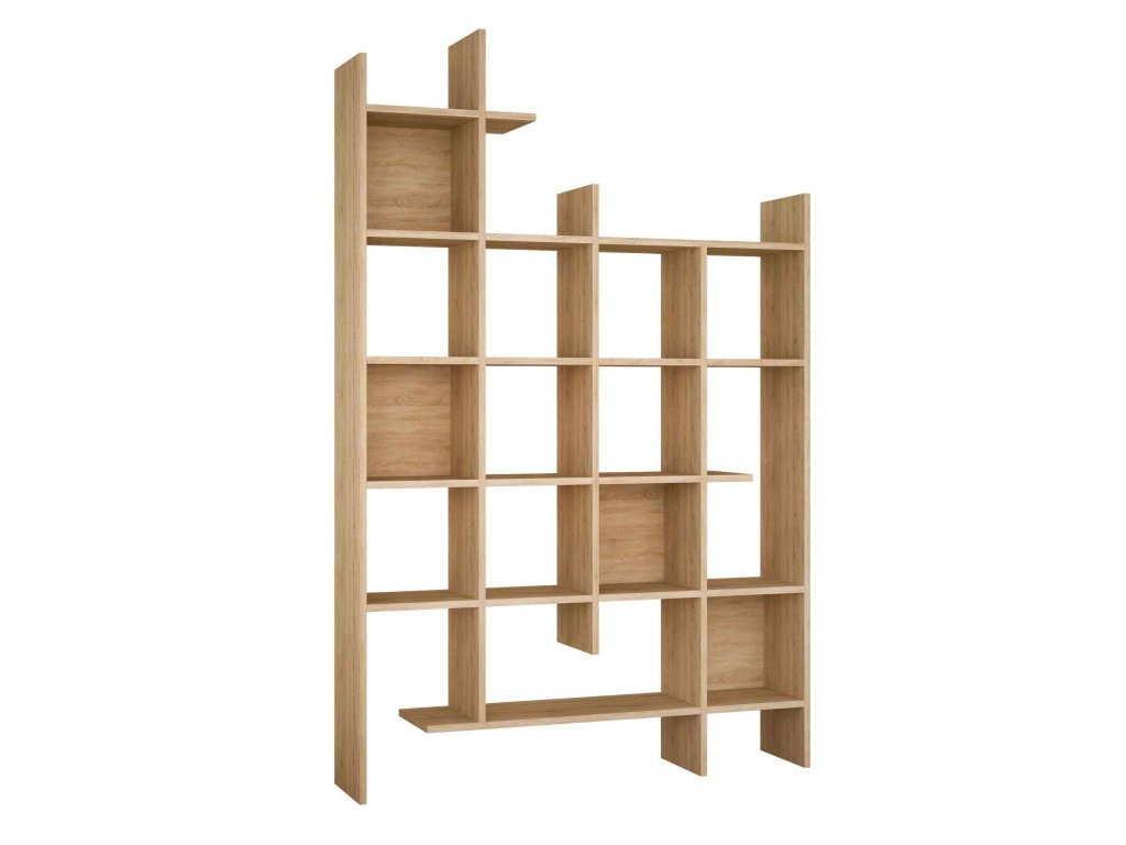 Knihovna s pěti praktickými policemi nabízí dostatek úložného prostoru pro vaše oblíbené knihy, rodinné fotografie či dekorační předměty. Vysoký design doplněný dubovým dekorem přináší do obývacího pokoje atmosféru skandinávské jednoduchosti a tepla dřeva. Kvalitní materiály zaručují, že regál bude sloužit po dlouhá léta bez známek opotřebení.