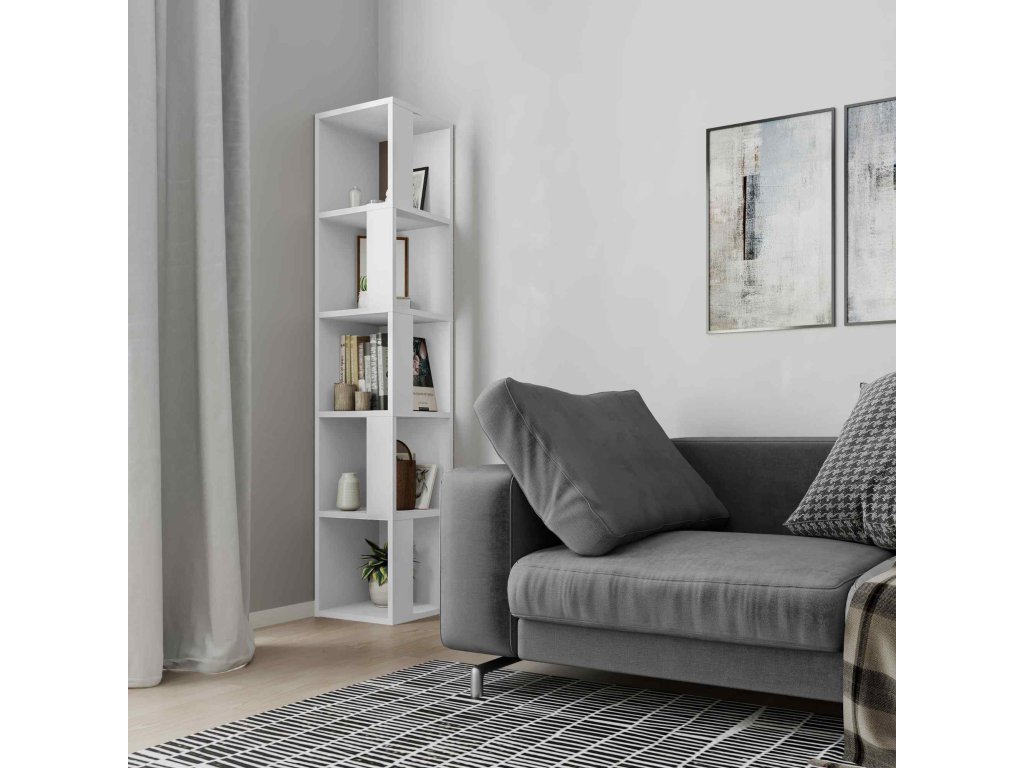 Design: Moderní skandinávský styl kombinovaný s rohovým designem a 4 poličkami poskytuje dostatek úložného prostoru, aniž by zabral příliš mnoho místa v místnosti. Robustní konstrukce s tloušťkou materiálu 18 mm zaručuje stabilitu a bezpečnost.