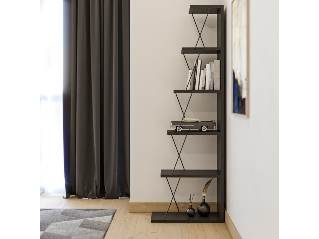 Elegantní policový regál navržený v industriálním stylu, ideální pro každý moderní obývací pokoj. Kombinace černé kovové konstrukce a dekoru antracitu dodává regálu sofistikovaný vzhled, který zaujme na první pohled. Materiál je Melamin, VT laminát (18 mm) a kov. Kvalitní laminátová deska zajišťují odolnost a dlouhou životnost. Dodáváme v demontovaném stavu.