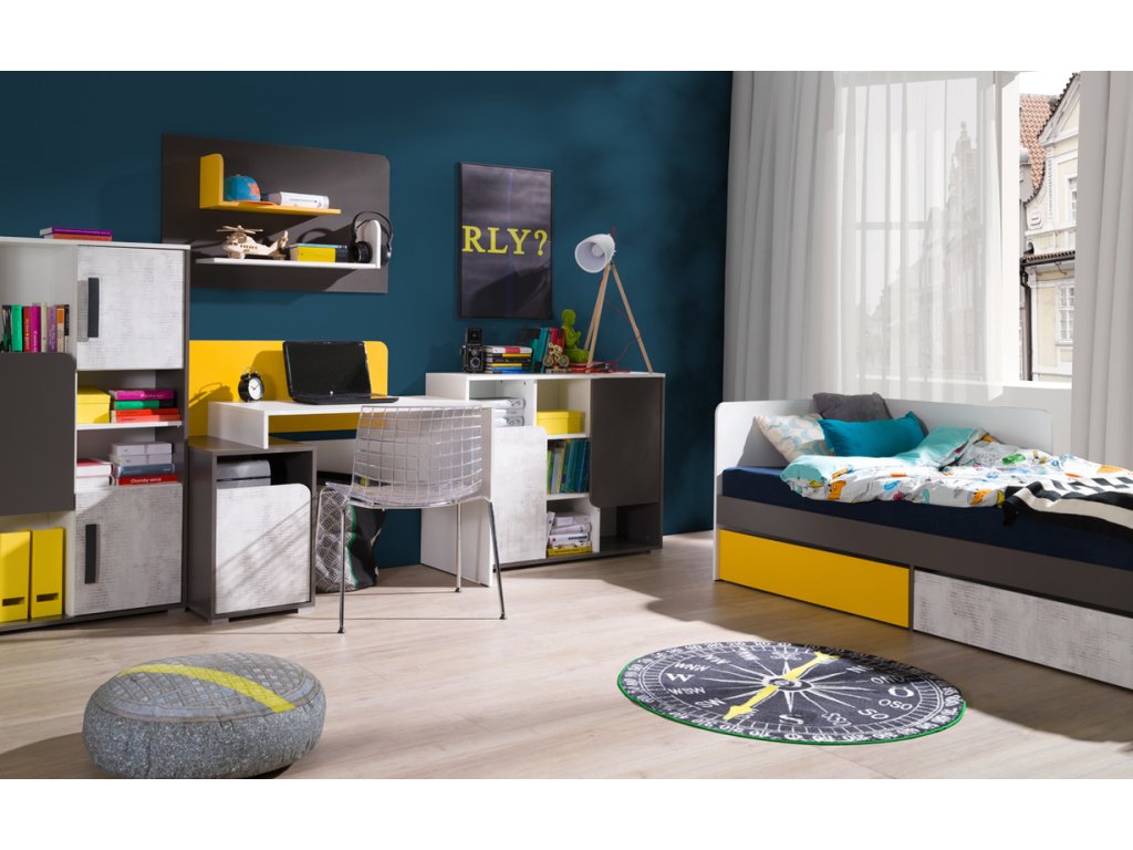 Regál je vyroben z vysoce kvalitní laminované dřevotřísky, odolné vůči poškrábání, vlhkosti a vysokým teplotám. Všechny hrany jsou opatřeny ABS lištou, která zajistí trvanlivost a odolnost proti nárazu. Díky svému uspořádání nabízí dostatek úložného prostoru. Regál je vhodným doplňkem do dětského, nebo studentského pokoje, ale výborně se hodí např. i do kanceláře. Je dodáván v demontu a součástí je montážní plánek včetně všech potřebných spojovacích materiálů. Pro inspiraci jsou přiloženy fotografie pokojů, které jsou vybaveny prvky ze systému Bruce.
