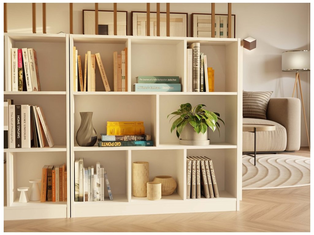 šířka: 100 cm | výška: 104 cm | hloubka: 24 cmRegál FIESTA 8P s otevřenou konstrukcí a osmi přihrádkami je stylovým a praktickým doplňkem. Vhodný do obýváku, ložnice i domácí...