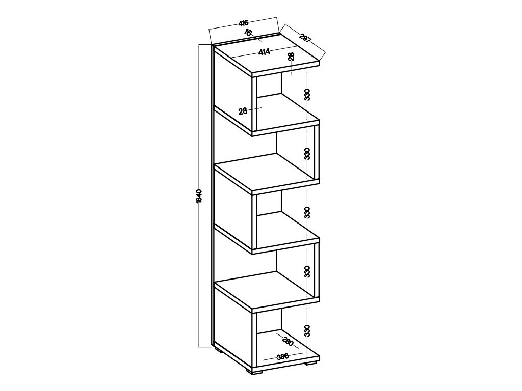 Praktický policový regál je vyroben z kvalitní laminátové desky (28 mm) s PVC hranami v barvě dub artisan. Výška prostoru mezi policemi je 33 cm, hloubka polic je 28 cm. Dodáváme v demontovaném stavu.Doplňkové parametry