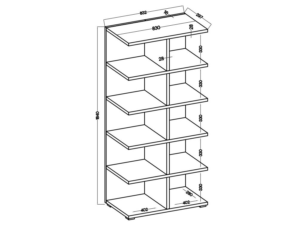 Praktický policový regál je vyroben z kvalitní laminátové desky (28 mm) s PVC hranami v barvě dub sonoma. Výška prostoru mezi policemi je 33 cm, hloubka polic je 28 cm. Dodáváme v demontovaném stavu.Doplňkové parametry