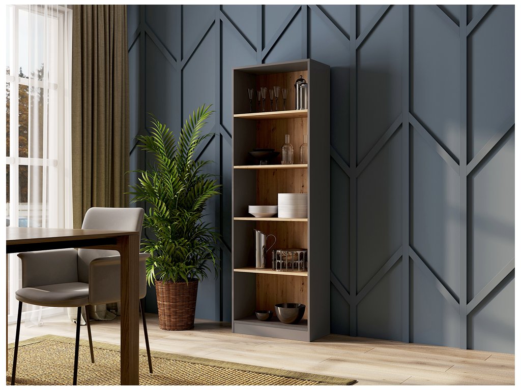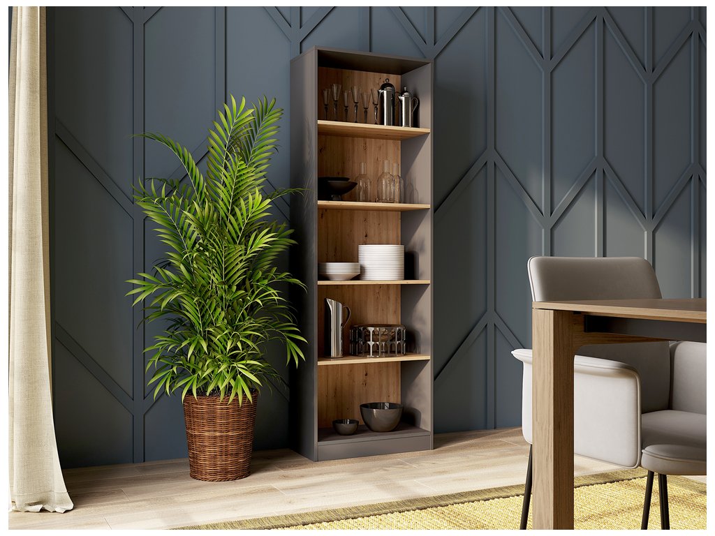 šířka: 80 cm | výška: 165 cm | hloubka: 29 cm Regál v moderním stylu v barevné kombinaci dub wotan/šedá antracit. Své uplatnění najde nejen jako úložný prostor, ale také jako...