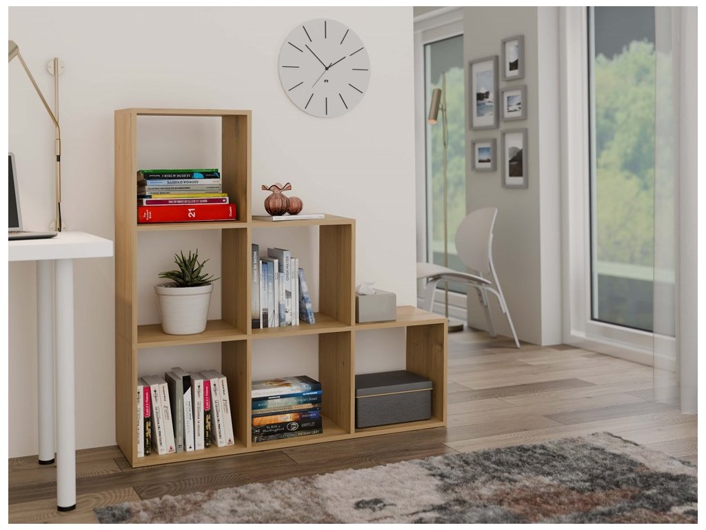 šířka: 93.6 cm | výška: 178.6 cm | hloubka: 29.6 cm MAURICIO no.4: Rohový regál v odstínu dubu pro váš obývací pokoj Udělejte svůj obývací pokoj ještě útulnějším s MAURICIO...
