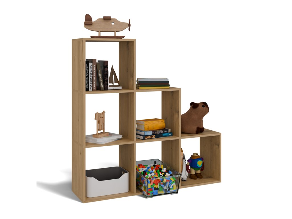 šířka: 83,2 cm | výška: 112,5 cm | hloubka: 29,7 cm Praktický policový regál je vyroben z kvalitní laminátové desky (28 mm) s PVC hranami v barvě dub artisan. Výška prostoru...