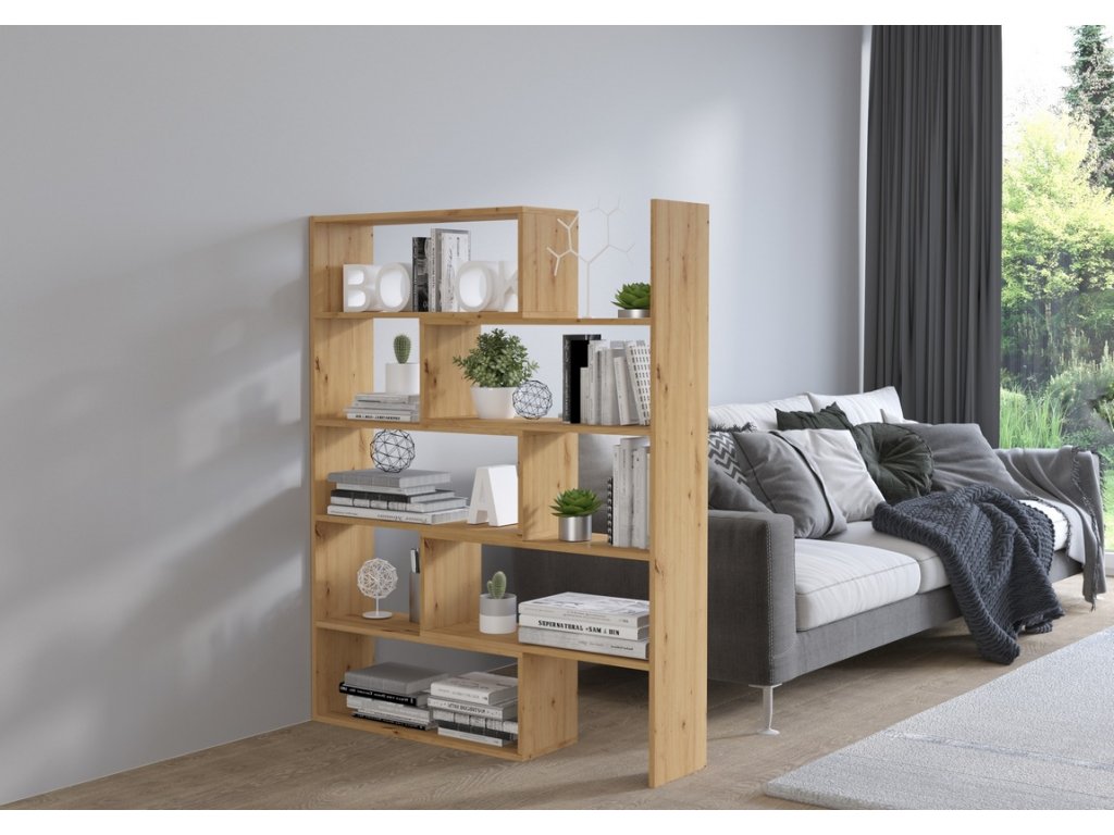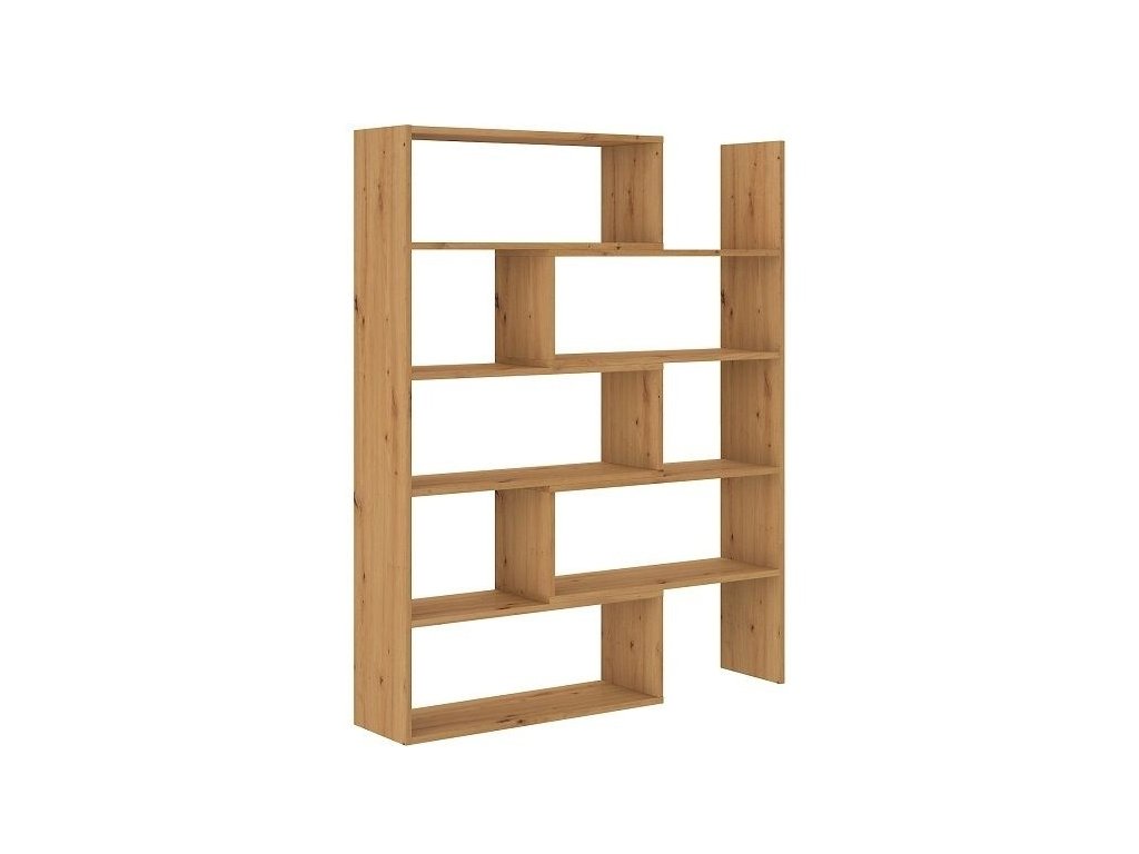 Praktický rozkládací regál. Regál má posuvnou část, takže je možné jej roztáhnout až na šířku 125 cm nebo dát do rohu a vybízí tak k dalším nápadům, jak využít prostor. Nábytek je vyroben z kvalitní laminátové desky ( 22 mm ) s PVC hrany 0,4 mm v barvě dub artisan. Dodáváme v demontovaném stavu.Doplňkové parametry