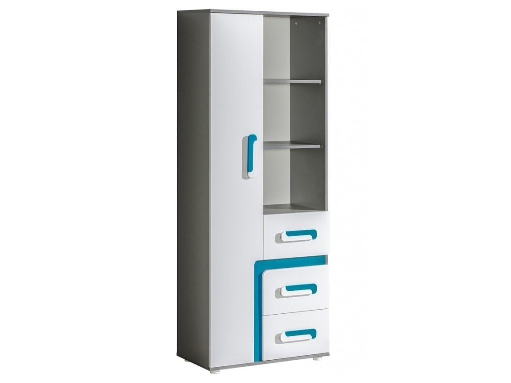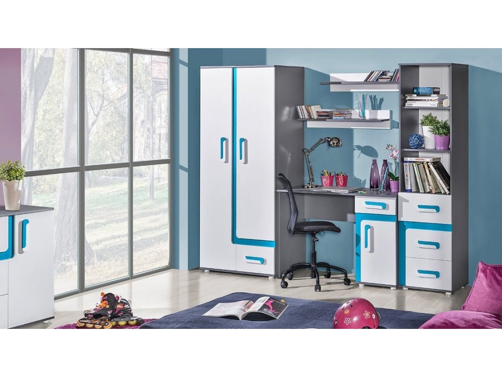 Skříň APETTITA ze sektorové řady, která se vyznačuje netradičním zpracováním barev a originalitou úchytů. Tento styl nábytku zaujme každou mladší generaci. Skříň je vyrobena z kvalitní LTD desky hraněné ABS lištou. Korpus je v barvě šedá antracit, dveře jsou bílé matné, doplňková barva je tyrkys. Úchytky jsou v barevné kombinaci tyrkys/bílá. Uvnitř skříně jsou police, v dolní části zásuvky. Sektorový nábytek APETTITA má široký výběr prvků, který Vám zaručí sestavit si dětský nebo studentský pokoj, ložnici či kancelář podle svých potřeb, přání a představ. Dodáváme v demontovaném stavu.Doplňkové parametry
