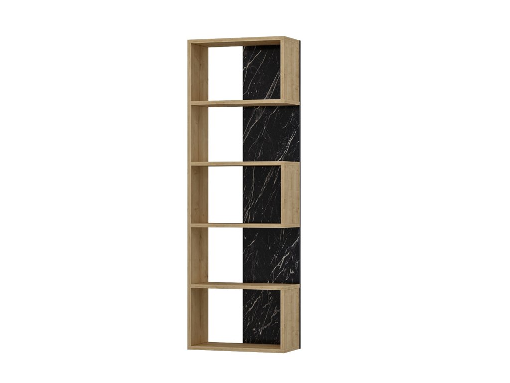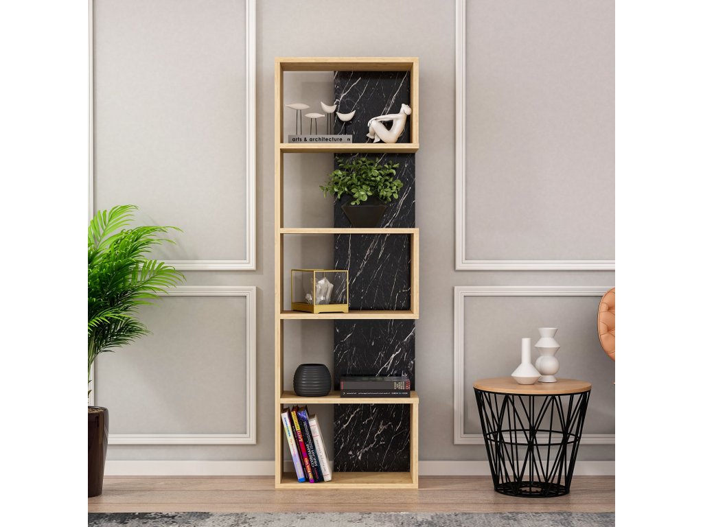 Regál je ideálním řešením pro moderní obývací pokoj. Díky svému elegantnímu designu a kombinaci materiálů nabízí nejen praktické úložné prostory, ale také estetický prvek, který podtrhne atmosféru vašeho interiéru. Čtyři prostorné police jsou ideální pro knihy, dekorace nebo další doplňky.