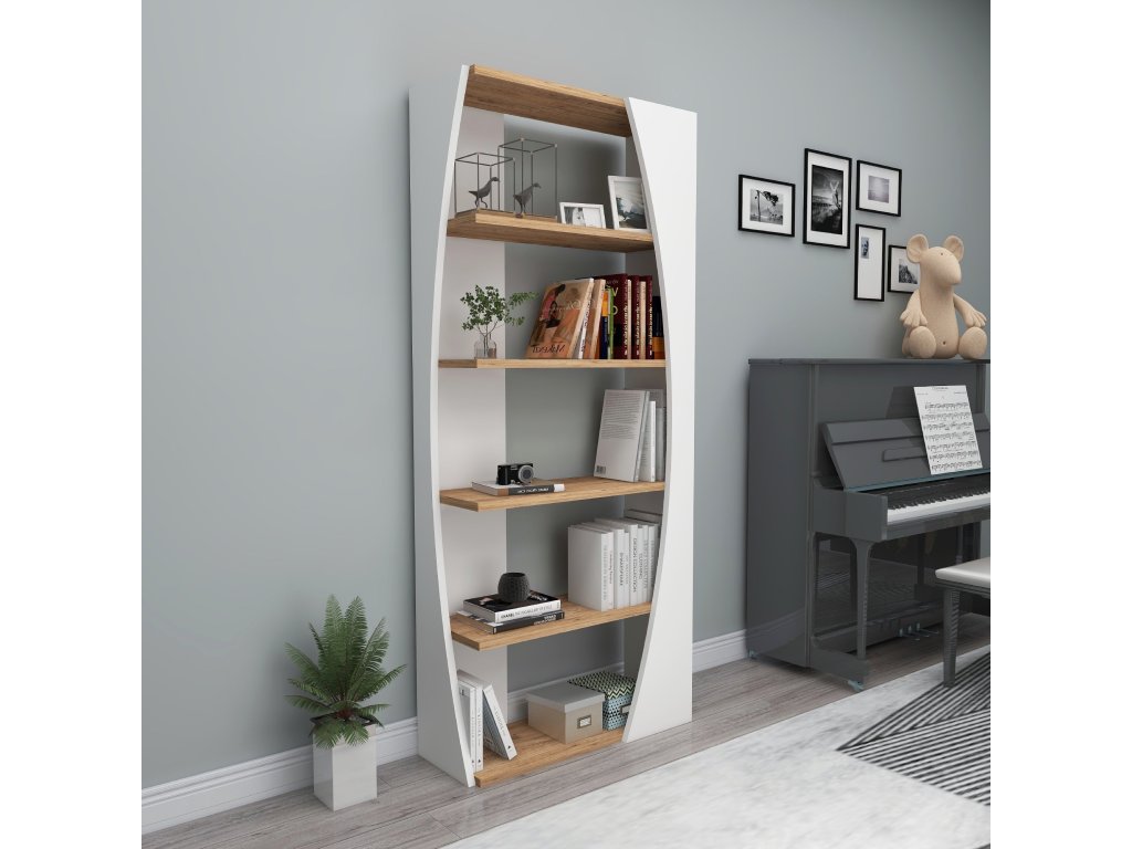 Knihovna přináší moderní design a funkčnost, které oceníte v každém obývacím pokoji. Čtyři prostorné police nabízejí dostatek místa pro knihy, dekorace či jiné doplňky, zatímco kombinace kvalitních materiálů a atraktivních barev dodává vašemu interiéru stylový vzhled.