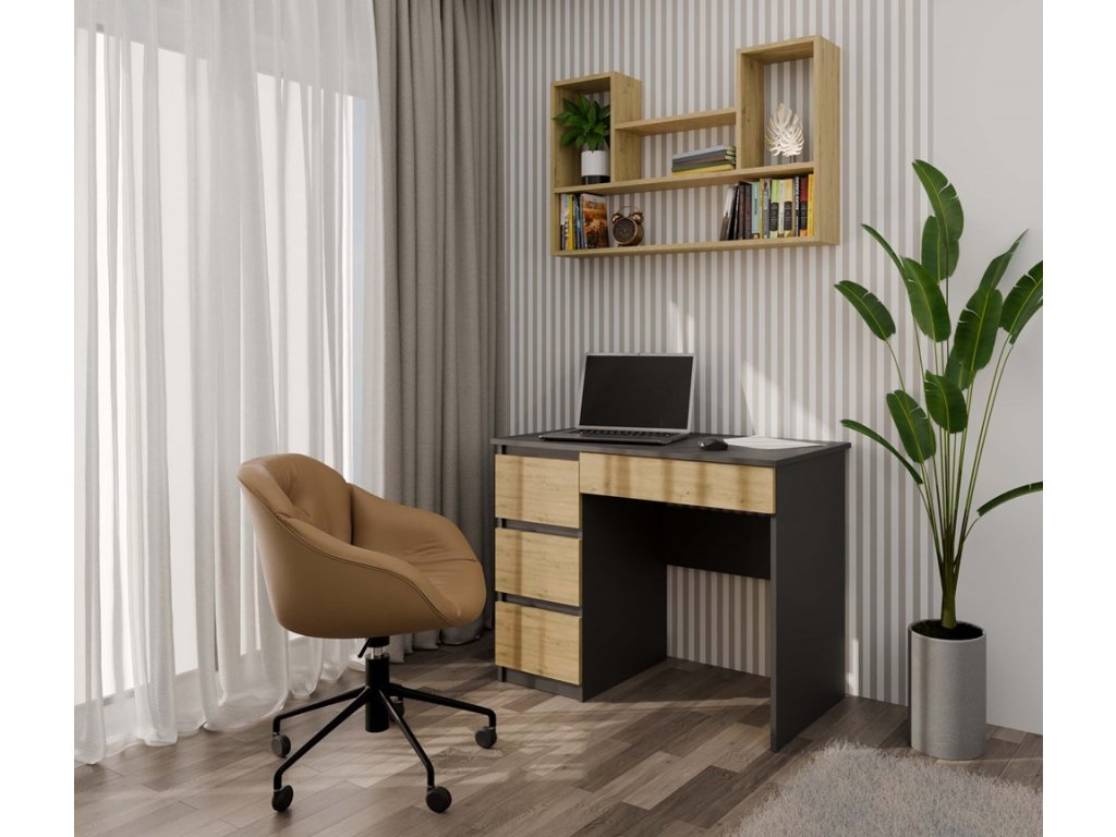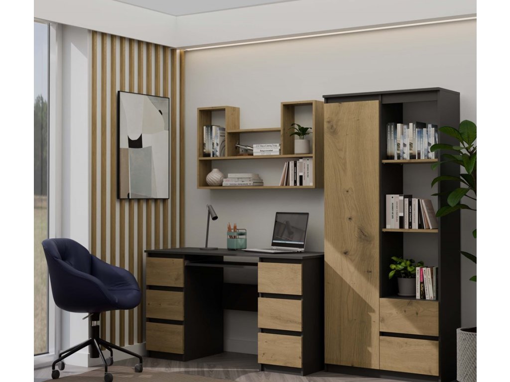šířka: 90 cm | výška: 193 cm | hloubka: 42 cm Regál se zásuvkou ve spodní části. Regál je vyroben z kvalitní LTD v barvě dub artisan/černá mat, doplněný černými kovovými...