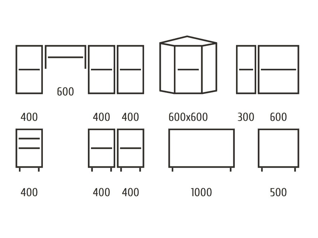 Tato moderní rohová kuchyně kombinuje praktičnost a jednoduchý design. Skříňky se dají poskládat v libovolném pořadí a to Vám umožní si sestavit kuchyni podle svých představ. Korpus a sokl jsou z kvalitní LTD desky v barvě antracit, dvířka jsou v barvě ořech ecco. Úchyty jsou v barvě černé. Sestava se skládá ze spodních skříněk - výška 82 cm, hloubka 47 cm, (s pracovní deskou výška 85 cm, hloubka 60 cm), šířka: - 2x 40 cm skříňka 1-dveřová - 40 cm skříňka se třemi zásuvkami - 50 cm skříňka 2-dveřová pod dřez - 100 cm skříňka rohová 1-dveřová a vrchních skříněk - výška 72 cm, hloubka 32 cm, šířka: - 30 cm skříňka 1-dveřová - 40 cm skříňka 1-dveřová - 2x 40 cm vitrína 1-dveřová - 60 cm skříňka 1-dveřová nad digestoř (výška 57 cm) - 60x60 cm skříňka 1-dveřová rohová - 60 cm skříňka 2-dveřová Kuchyně se prodává jako sestava, dokoupení skříněk není možné. Pracovní deska, spotřebiče, dřez a digestoř nejsou součástí kuchyně. Dřez a pracovní desky k zakoupení najdete v naší další nabídce. Dodáváme v demontovaném stavu.Doplňkové parametry