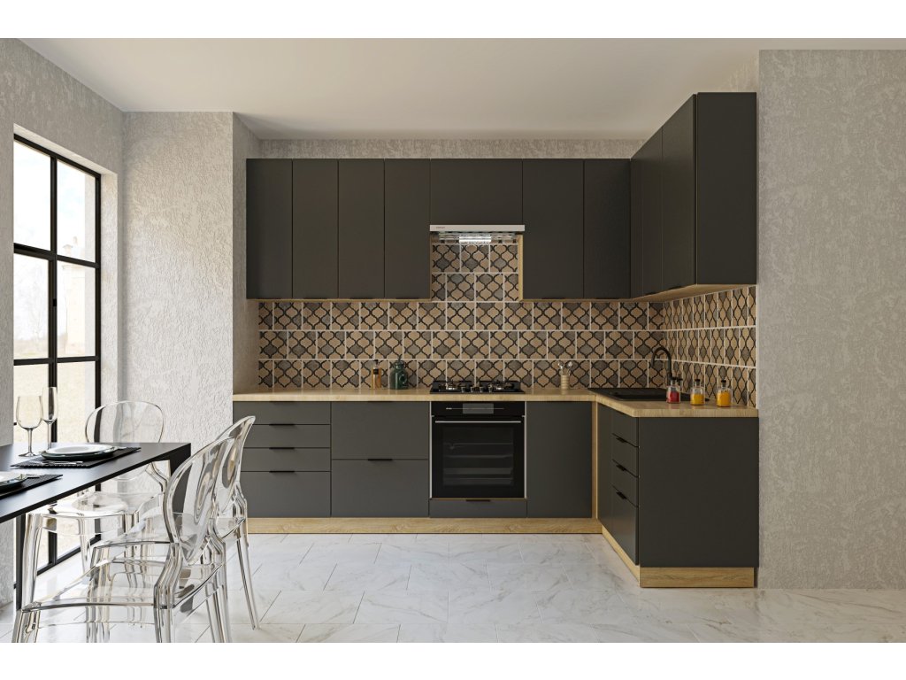 Rohová kuchyňská linka 280x140 KROFT R2V grafit/dub sonoma