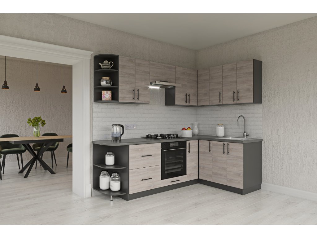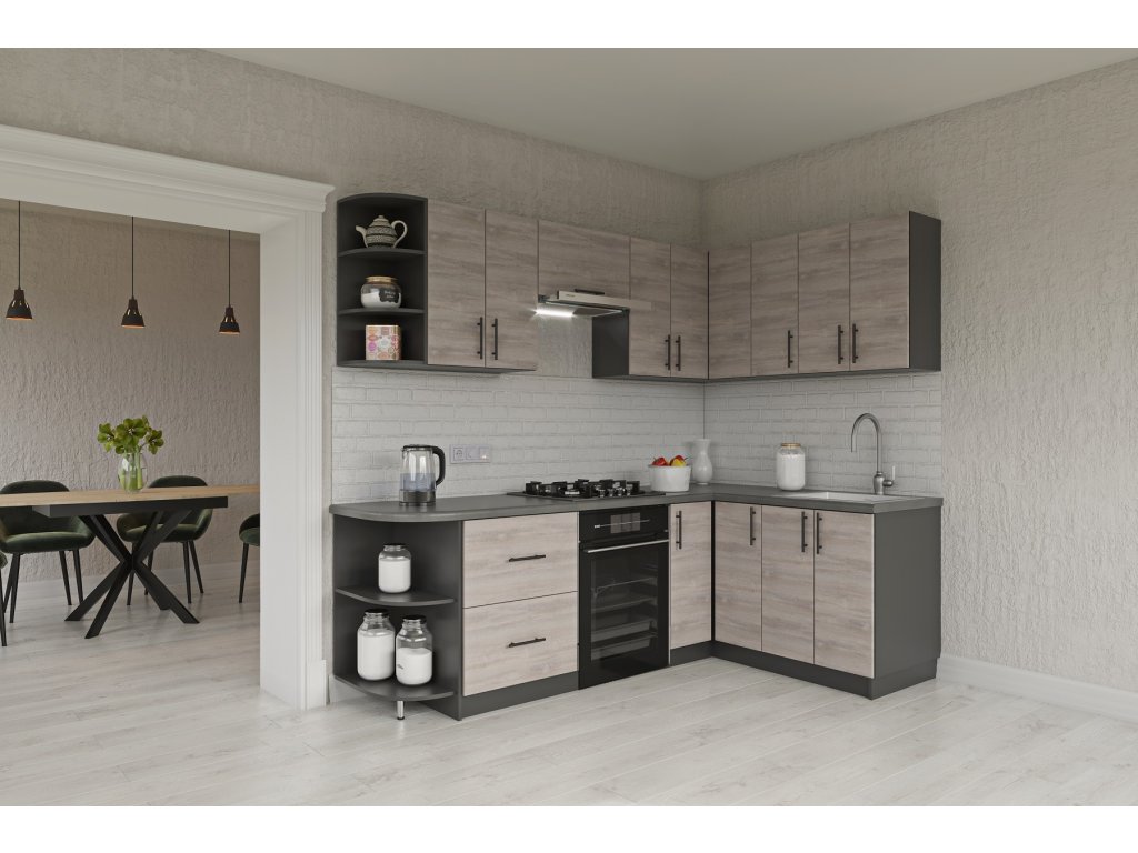 Dřez, pracovní deska, sokl nejsou v ceně sestavy. Spotřebiče nejsou součástí kuchyňské linky. Dodáváme v demontovaném stavu.