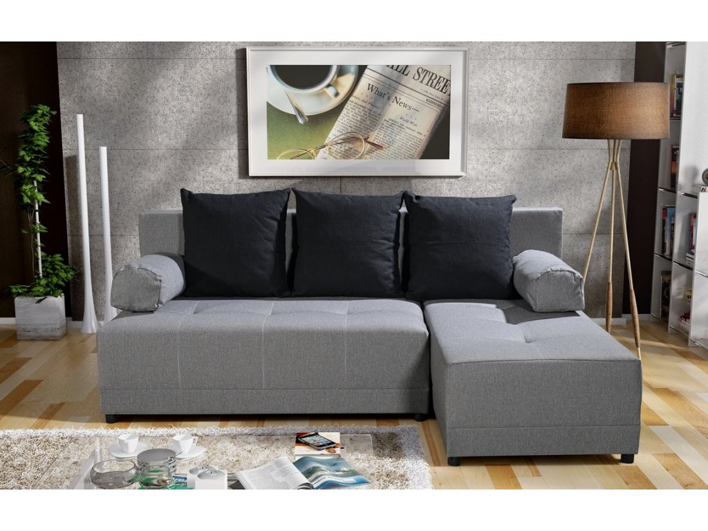 Praktická rohová sedačka. Netradiční a velmi moderní vzhled. Sedačka obsahuje úložný prostor a prostor na příležitostní spaní. Po rozložení je spací plocha 203 x 127 cm. Rozklad je snadný, vysune se matrace do přední části. Pohodlné sezení zaručují bonelové pružiny spolu s PUR pěnou. Sedačka je univerzální, dá se složit na obě strany. Barevné provedení - látka Inari 91 ( šedá ) a Inari 100 ( černá ).Doplňkové parametry
