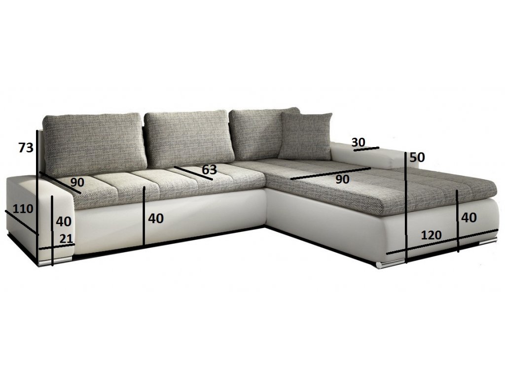 šířka: 297 cm | výška: 73/85 cm | hloubka: 210 cm Praktická rohová sedačka. Netradiční a velmi moderní vzhled. Sedačka obsahuje úložný prostor a prostor na příležitostní spaní....