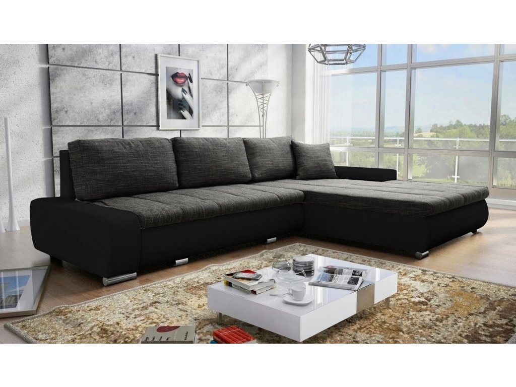 Praktická rohová sedačka. Netradiční a velmi moderní vzhled. Sedačka obsahuje úložný prostor a prostor na příležitostní spaní. Po rozložení je spací plocha 255 x 150 cm. Rozklad je snadný, pomocí automatu se vysune vozík s matrací do přední části. Nožky jsou z kovu. Pohodlné sezení zaručuje kvalitní PUR pěna spolu s vlnovcovými pružinami. Sedačka je univerzální, dá se složit na obě strany. Změna pozice strany je možná jednoduchým přemontováním (otočením) háků. Jeden polštářek je v ceně. Barevné provedení - ekokůže černá Madryt 1100 a látka šedá žíhaná Berlin 02.Doplňkové parametry