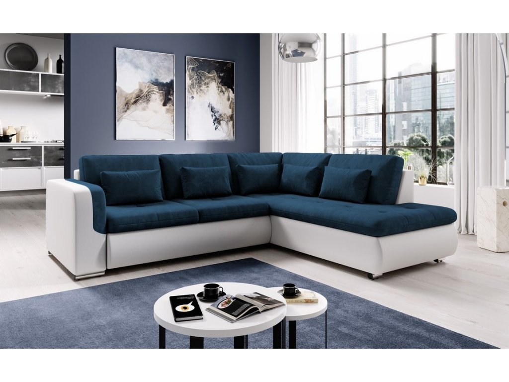Praktická prostorná celočalouněná rohová sedačka do tvaru L. Netradiční a velmi moderní vzhled. Sedačka obsahuje prostor na příležitostní spaní. Po rozložení je spací plocha 195 x 134 cm. Rozklad je snadný, vysune se vozík s matrací do přední části. Pohodlné sezení zaručují vlnovcové pružiny spolu s PUR pěnou ( T30 ). Výška sedu je 42 cm, hloubka sedu 48 cm, výška sedačky bez polštářů 67 cm. Nožky jsou kovové pochromované. Barevné provedení - korpus ekokůže Madryt 120, sedací a opěrná část látka Kronos 9, dekorační polštářky Kronos 9.Doplňkové parametry