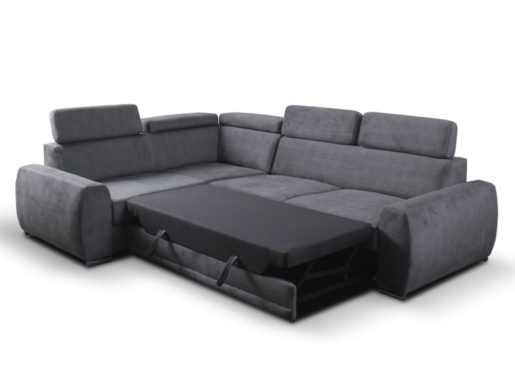 Praktická celočalouněná rohová sedačka s rohem nalevo. Netradiční a velmi moderní vzhled. Sedačka obsahuje úložný prostor a prostor na příležitostní spaní. Po rozložení je spací plocha 205 x 130 cm. Rozklad je snadný pomocí automatu. Pohodlné sezení zaručují vlnovcové a profilované pružiny spolu s visoceelastickou PUR pěnou. Nožky jsou kovové. Velkou výhodou sedačky jsou 5 polohovatelných opěrek na hlavu pro větší pohodlí. Po zvednutí zádové opěrky je výška sedací soupravy 90 cm. Barevné provedení - látka Element 06. Můžete si vybrat výběr rohu v naší nabídce.Doplňkové parametry