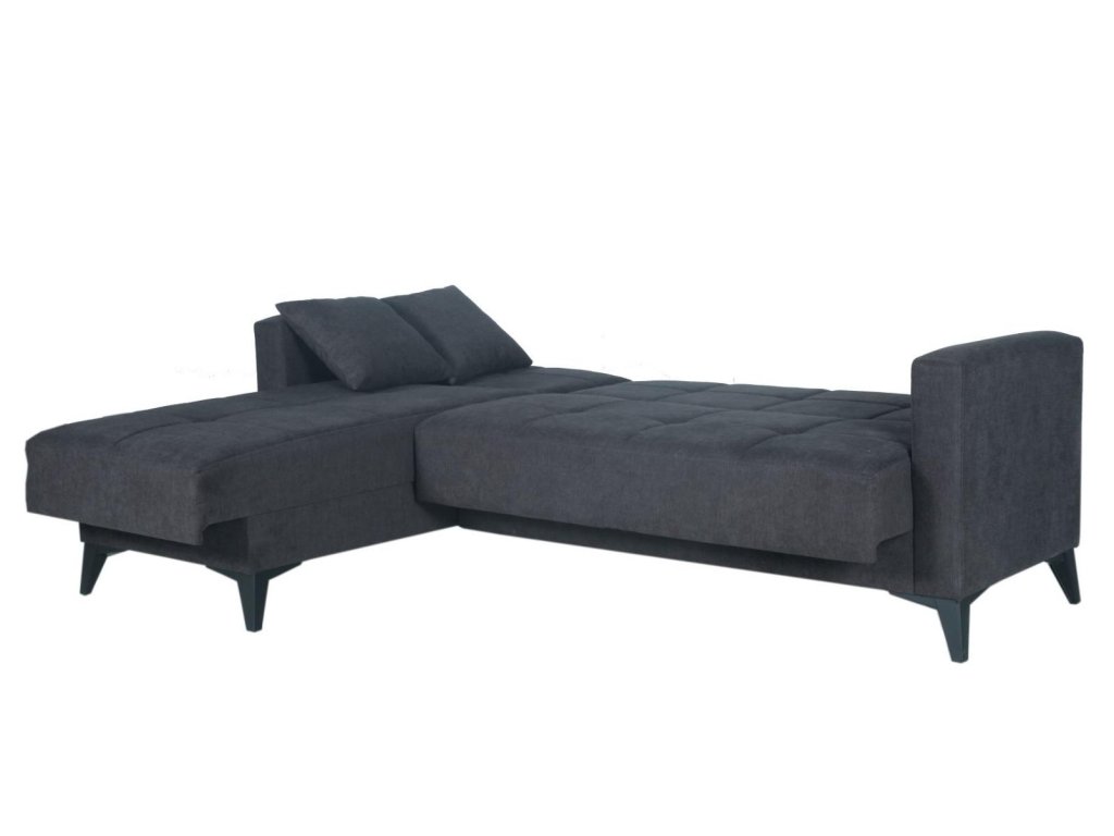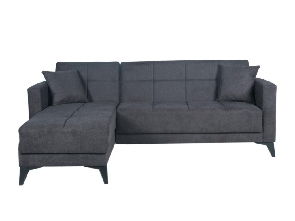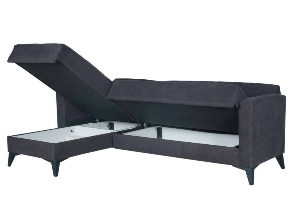 Stylová rohová sedačka s funkcí spaní bude praktickým kouskem do každého interiéru. Sedačka je ideální pro každodenní odpočinek, ale také vhodné místo ke spaní nejen pro Vás, ale i vaše hosty. Za komfort sezení a spaní jsou zodpovědné pružiny Bonnell a vysoce kvalitní PUR pěna. Bohatý úložný prostor ocení každý majitel. Sedačka je čalouněna kvalitní potahovou látkou v antracitové barvě a stojí na černých plastových nožičkách. Specifikace: spací plocha po rozložení: 195x102 cm, celkové rozměry: Š:152/H:219/V:86 cm.Doplňkové parametry