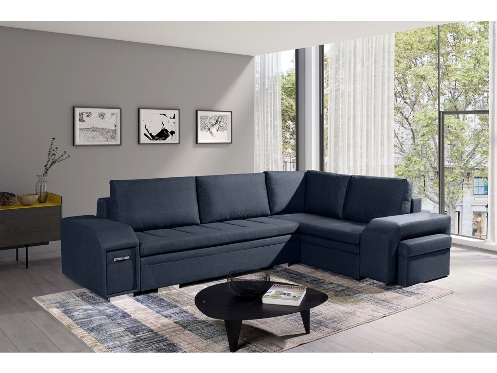 Sedací souprava Alana v sobě spojuje 2 důležité prvky, které nesmí chybět žádné sedací soupravě. Jsou to pohodlí a praktičnost. Praktickou stránkou této sedací soupravy je možnost rozložení pro příležitostné přespání návštěvy a nepostradatelné úložné prostory. Úložný prostor s univerzálním využitím najdete v područi, dále v taburetu, který je možno zasunout do druhé područe a samořejmostí je i úložný prostor v sedací soupravě. Jsou dva a využijete je např. na lůžkoviny. Sedací souprava je celočalouněná, takže je vhodná i k umístění do prostoru. Výplň sedáků tvoří kombinace pružin s kvalitní PUR pěnou. Tato kombinace spolu s velkými opěrnými polštáři, zajišťuje pohodlí. Sedací soupravu nabízíme v levém i pravém provedení v několika trendy barvách. Vyobrazené doplňky a dekorace nejsou v ceně. Vzorek látky, ve které bude sedací souprava dodána, je vyobrazen v doplňkových fotografiích.