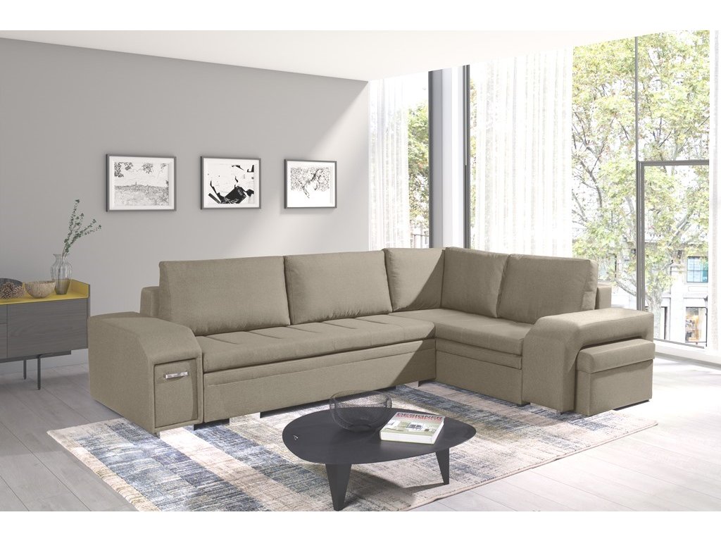 Sedací souprava Alana v sobě spojuje 2 důležité prvky, které nesmí chybět žádné sedací soupravě. Jsou to pohodlí a praktičnost. Praktickou stránkou této sedací soupravy je možnost rozložení pro příležitostné přespání návštěvy a nepostradatelné úložné prostory. Úložný prostor s univerzálním využitím najdete v područi, dále v taburetu, který je možno zasunout do druhé područe a samořejmostí je i úložný prostor v sedací soupravě. Jsou dva a využijete je např. na lůžkoviny. Sedací souprava je celočalouněná, takže je vhodná i k umístění do prostoru. Výplň sedáků tvoří kombinace pružin s kvalitní PUR pěnou. Tato kombinace spolu s velkými opěrnými polštáři, zajišťuje pohodlí. Sedací soupravu nabízíme v levém i pravém provedení v několika trendy barvách. Vyobrazené doplňky a dekorace nejsou v ceně. Vzorek látky, ve které bude sedací souprava dodána, je vyobrazen v doplňkových fotografiích.