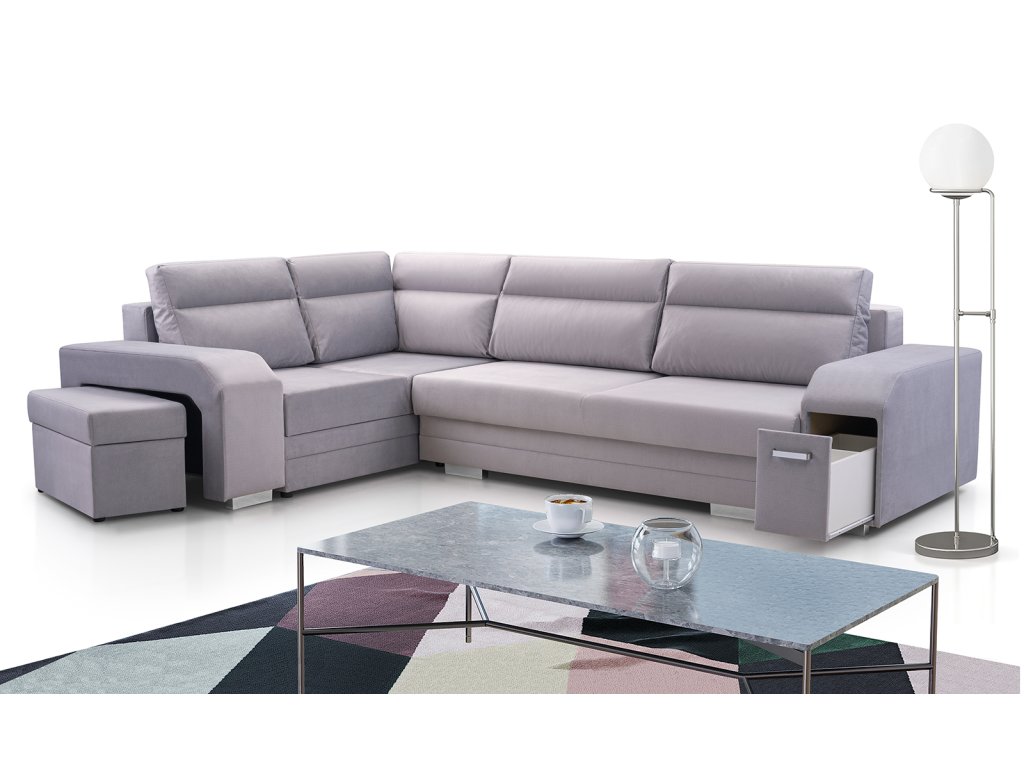 Sedací souprava Alvin v moderním designu v sobě spojuje 2 důležité prvky, které nesmí chybět žádné sedací soupravě. Jsou to pohodlí a praktičnost. Praktickou stránkou této sedací soupravy je možnost rozložení pro příležitostné přespání návštěvy a nepostradatelné úložné prostory. Úložný prostor s univerzálním využitím najdete v područi, dále v taburetu, který je možno zasunout do druhé područe a samořejmostí je i úložný prostor v sedací soupravě. Jsou dva a využijete je např. na lůžkoviny. Výplň sedáků tvoří kombinace pružin s kvalitní PUR pěnou. Tato kombinace spolu s velkými opěrnými polštáři, zajišťuje pohodlí. Sedací soupravu nabízíme v levém i pravém provedení a v několika oblíbených barvách. Vyobrazené doplňky a dekorace nejsou v ceně.