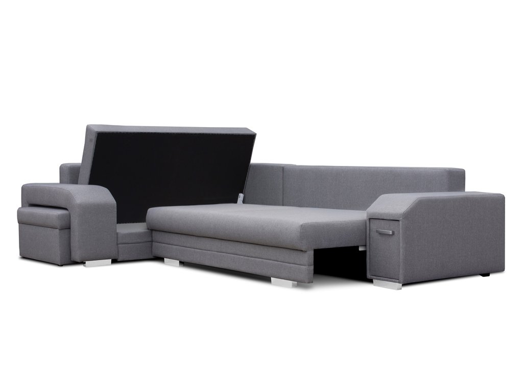 Sedací souprava Alvin v moderním designu v sobě spojuje 2 důležité prvky, které nesmí chybět žádné sedací soupravě. Jsou to pohodlí a praktičnost. Praktickou stránkou této sedací soupravy je možnost rozložení pro příležitostné přespání návštěvy a nepostradatelné úložné prostory. Úložný prostor s univerzálním využitím najdete v područi, dále v taburetu, který je možno zasunout do druhé područe a samořejmostí je i úložný prostor v sedací soupravě. Jsou dva a využijete je např. na lůžkoviny. Výplň sedáků tvoří kombinace pružin s kvalitní PUR pěnou. Tato kombinace spolu s velkými opěrnými polštáři, zajišťuje pohodlí. Sedací soupravu nabízíme v levém i pravém provedení a v několika oblíbených barvách. Vyobrazené doplňky a dekorace nejsou v ceně. Úvodní fotografie je ilustrační, sedací souprava bude dodána v potahové látce Malmo - viz. vzorek látky v doplňkových fotografiích.