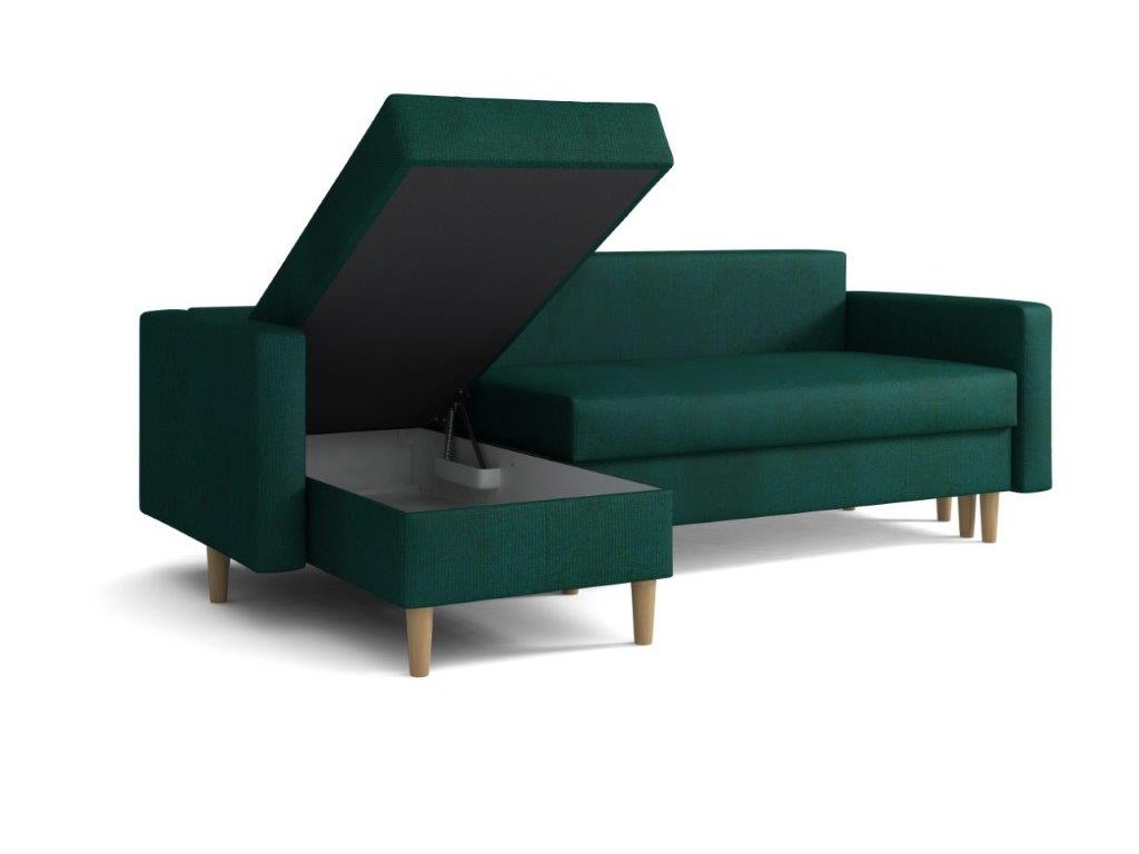 Sedací souprava Anabel je krásným designovým RETRO kouskem, který výborně zapadne do moderního i klasického interiéru. Retro design podtrhují dřevěné nohy a vtahy na opěrných polštářích. Její velkou předností je pohodlí, praktičnost a univerzální použití. Tzn. že si ji můžete podle potřeby sestavit jako levou nebo pravou, což je výhoda při zařizování obývacího pokoje. Nemusíte přemýšlet do jakého rohu postavíte sedací soupravu, jednoduše ji podle potřeby přizpůsobíte. Sedací souprava je rozkládací a může tak sloužit k občasnému přespání Vaší návštěvy. Samozřejmostí je i praktický úložný prostor, který je v obou částech sedačky a můžete ho využít např. na lůžkoviny. Sedací souprava je potažena látkou a nabízíme v několika oblíbených barvách. Výplň sedáků tvoří kombinace pružin s kvalitní PUR pěnou, což zajišťuje velmi pohodlné sezení. Sedací souprava je vhodná i do menších pokojů. Vyobrazené doplňky a dekorace nejsou v ceně.
