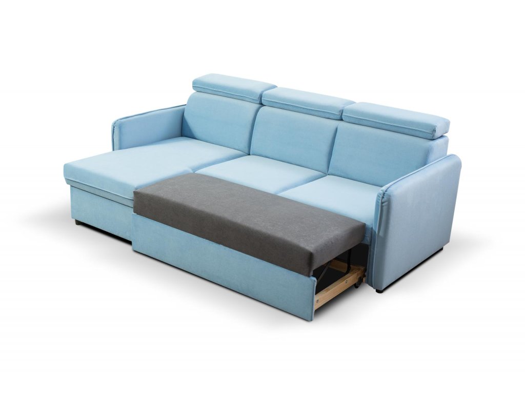 Sedací souprava Barica mini je vyrobena v jednoduché elegantní linii, které se hodí do moderního i klasického interiéru. Díky svým rozměrům je vhodná i do menších pokojů. Její velkou předností je univerzální použití. Tzn. že si ji můžete podle potřeby sestavit jako levou nebo pravou, což je výhoda při zařizování obývacího pokoje. Nemusíte přemýšlet do jakého rohu sedací soupravu postavíte. Jednoduše si ji podle potřeby přizpůsobíte. Sedací souprava je rozkládací. Jednoduchým rozložením pomocí automatu, vytvoříte dostatečně velké lůžko k příležitostnému přespání Vaší návštěvy. Samozřejmostí je i praktický úložný prostor, který můžete využít např. na lůžkoviny. Sedací souprava je potažena kvalitní látkou a nabízíme ji na objednávku v několika odstínech. Výplň sedáků tvoří kombinace pružin s kvalitní PUR pěnou, což zajišťuje velmi pohodlné sezení. Pro pohodlí při sezení a odpočinku je sedací souprava vybavena polohovacími opěrkami hlavy. Správná barva potahové látky je zobrazena na druhé fotografii. Ostatní fotografie jsou pouze ilustrační.