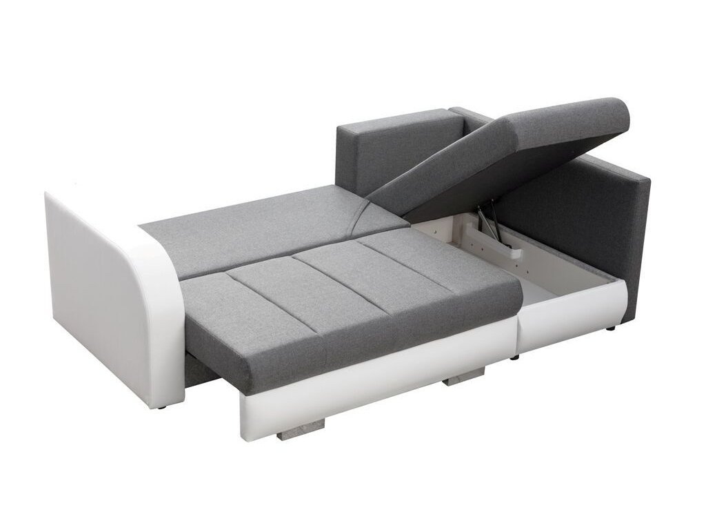 Rohová sedací souprava Citizen, je vzhledem ke svým rozměrům, vhodná do menších pokojů. Sedací souprava je rozkládací a má také 2 praktické úložné prostory. Jednoduchým rozložením vznikne dostatečně velké lůžko vhodné k příležitostnému spaní. Výplň sedáku tvoří kombinace pružin faliste s kvalitní PUR pěnou. Tato kombinace zajistí pohodlné sezení. Sedací souprava je potažena kvalitní látkou v kombinaci s bílou EKO kůží. Tuto sedačku nabízíme v několika barevných variantách. V ceně sedací soupravy je 5 opěrných polštářů. Ostatní vyobrazené dekorace nejsou v ceně.