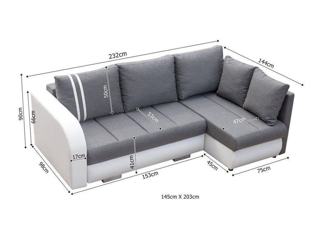 Rohová sedací souprava Citizen, je vzhledem ke svým rozměrům, vhodná do menších pokojů. Sedací souprava je rozkládací a má také 2 praktické úložné prostory. Jednoduchým rozložením vznikne dostatečně velké lůžko vhodné k příležitostnému spaní. Výplň sedáku tvoří kombinace pružin faliste s kvalitní PUR pěnou. Tato kombinace zajistí pohodlné sezení. Sedací souprava je potažena kvalitní látkou v kombinaci s bílou EKO kůží. Tuto sedačku nabízíme v několika barevných variantách. V ceně sedací soupravy je 5 opěrných polštářů. Ostatní vyobrazené dekorace nejsou v ceně.