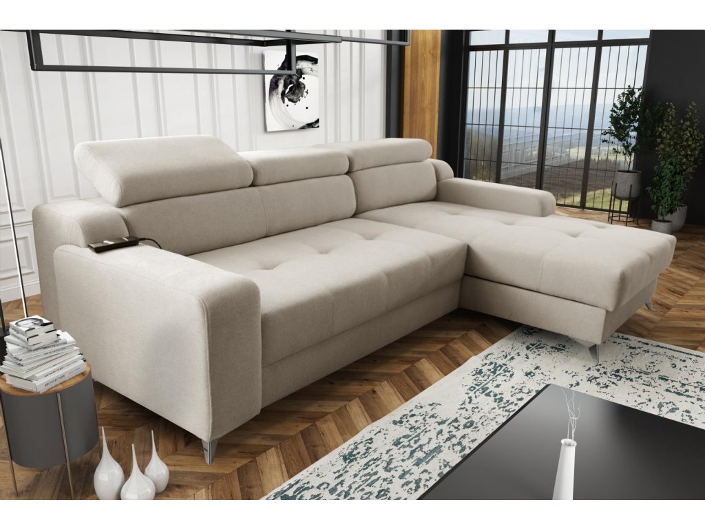 Sedací souprava Darina osloví každého, kdo preferuje moderní vzhled a zároveň pohodlí a praktičnost. Je potažena kvalitní potahovou látkou s elegantním prošitím na sedací části. Naprostou novinkou u této sedací soupravy je elektrický rozklad. Po stisknutí ovládacího tlačítka se vysune sedací část do polohy pro spaní. Má také velmi praktický úložný prostor, který můžete využít např., na lůžkoviny. Pohodlí při sezení zajišťuje výplň sedáků, kterou tvoří kombinace pružin faliste s kvalitní PUR pěnou. Komfort a pohodlí při odpočinku zvyšuje polohovací opěrka hlavy. Sedací soupravu nabízíme v levém i pravém provedení. Vyobrazené dekorace a doplňky nejsou v ceně sedací soupravy. Fotografie sedací soupravy v rozkladu jsou pouze ilustrační, správný odstín je zobrazen na úvodní fotografii.